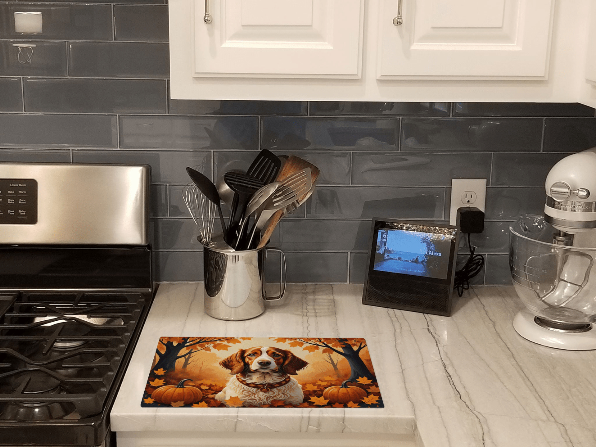 Glass Cutting Board featuring breed specific Brittany Spaniel artwork. Introduce your kitchen to the vibrant, large Decorative Glass Cutting Board from Caroline's Treasures. Crafted from resilient tempered glass, this board is not only a utilitarian necessity but also a colorful art piece. With its generous dimensions of 15 inches in height and 12 inches in length, it offers ample space for all your cutting needs. Every piece showcases captivating artwork from distinguished artists, bringing an aesthetic edge to your kitchen. Beyond its attractive design, this cutting board ensures your countertop stays pristine and unscathed, owing to its heat-resistant properties. Engineered with user convenience in mind, it features non-skid feet for stability, and rounded corners for additional safety. Its robust construction renders it virtually unbreakable, guaranteeing longevity. The board comes with protective feet bumpers, maintaining its position during use. This product is recommended to be hand washed only. Proudly printed and assembled in the United States, this cutting board exemplifies superior craftsmanship. With Caroline's Treasures' Decorative Glass Cutting Board, you're investing in a blend of functionality and artistic flair.