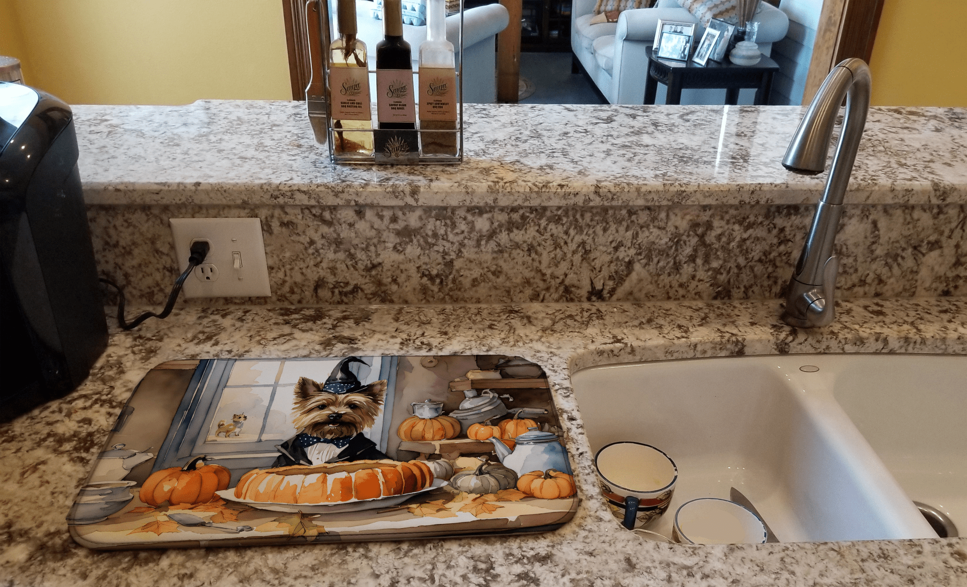 Celebrate Fall in your kitchen with our Cairn Terrier Fall Kitchen Pumpkins Dish Drying Mat. This stylish mat blends practical absorbency with breed-inspired artwork to keep countertops dry after every wash. Your home will feel warm and welcoming, and your daily cleanup becomes a touch more luxurious—perfect for pet parents who want style plus comfort.