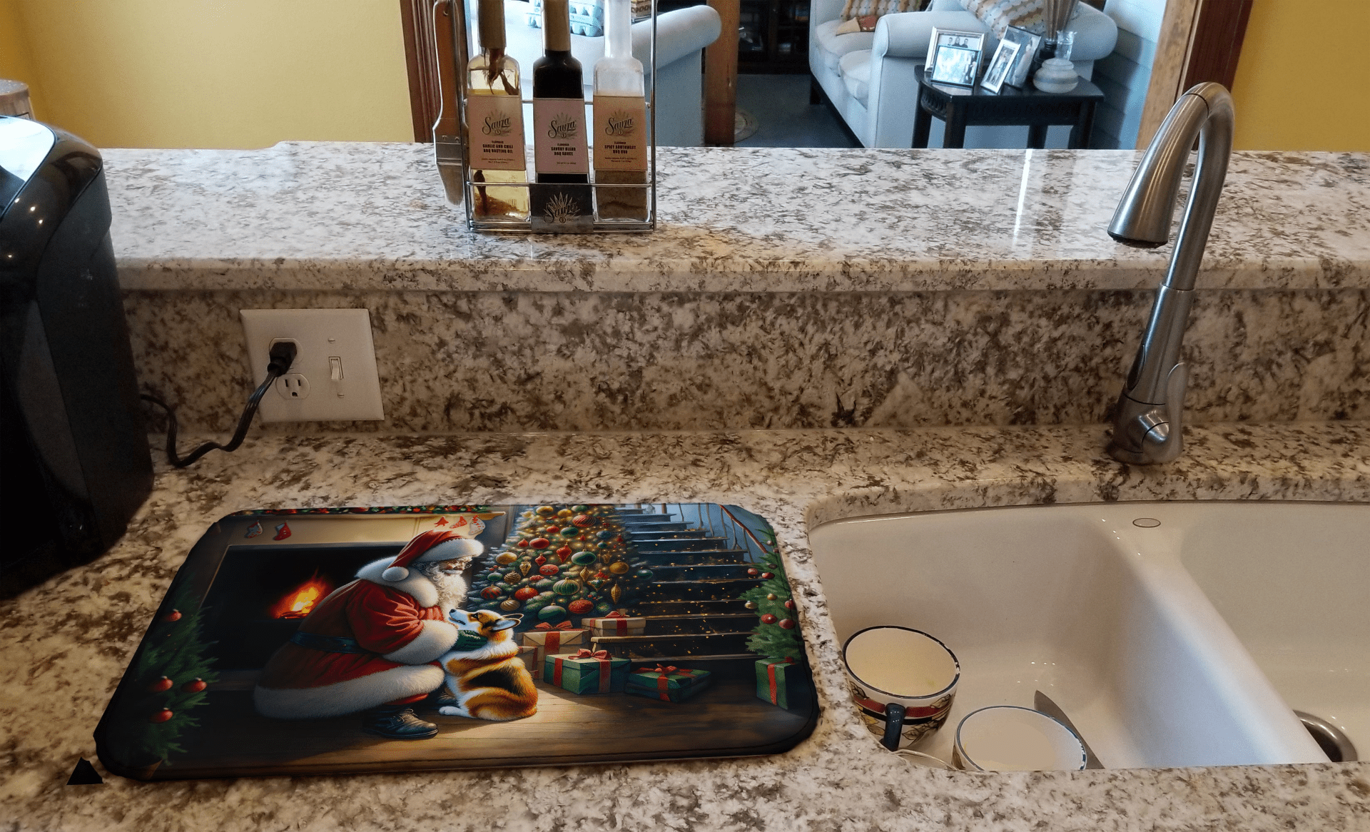 Bring a festive touch to your kitchen with this Corgi and Santa Claus Dish Drying Mat. Designed to keep countertops dry while adding a playful, luxe vibe, it makes post-dish duty feel like a celebration. The absorbent surface dries dishes quickly and quietly, while the durable backing stays put on busy counters. Perfect for holiday gatherings and everyday use, it’s a chic gift for pet-loving households seeking style + practicality.