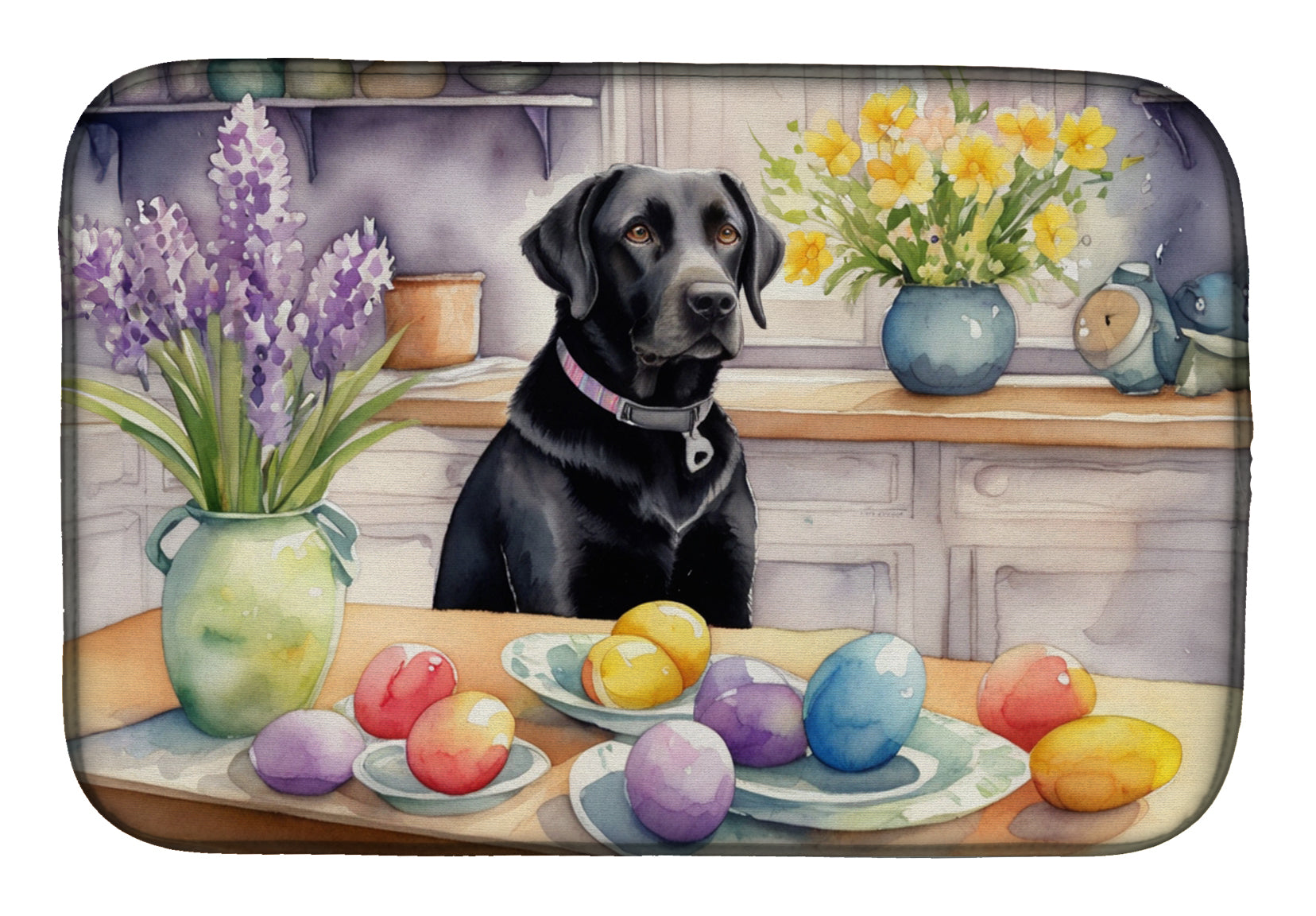 Dish Drying Mat featuring breed specific Labrador Retriever artwork. Celebrate Easter with this Easter Dish Drying Mat. Say goodbye to messy countertops and soggy dish towels with our innovative dish drying mat. Our high-quality dish drying pad is designed to keep your countertops dry while offering a stylish and efficient solution. Whether you're air drying dishes, glasses, stemware, silverware, pots, pans, bottles, or even fruits and vegetables, our dish mat is the perfect choice. The 14 inches x 22 inches size fits most counters and dish drying racks, and the non-slip design ensures stability. Made with water-absorbent polyester and a polyurethane foam insert, our dish drying mat is not only functional but also durable. It's machine washable and printed in the USA for long-lasting use. The beautiful artwork adds flair to your kitchen decor, making it a perfect housewarming gift or present for any occasion. Upgrade your kitchen experience with our absorbent and versatile dish drying mat.