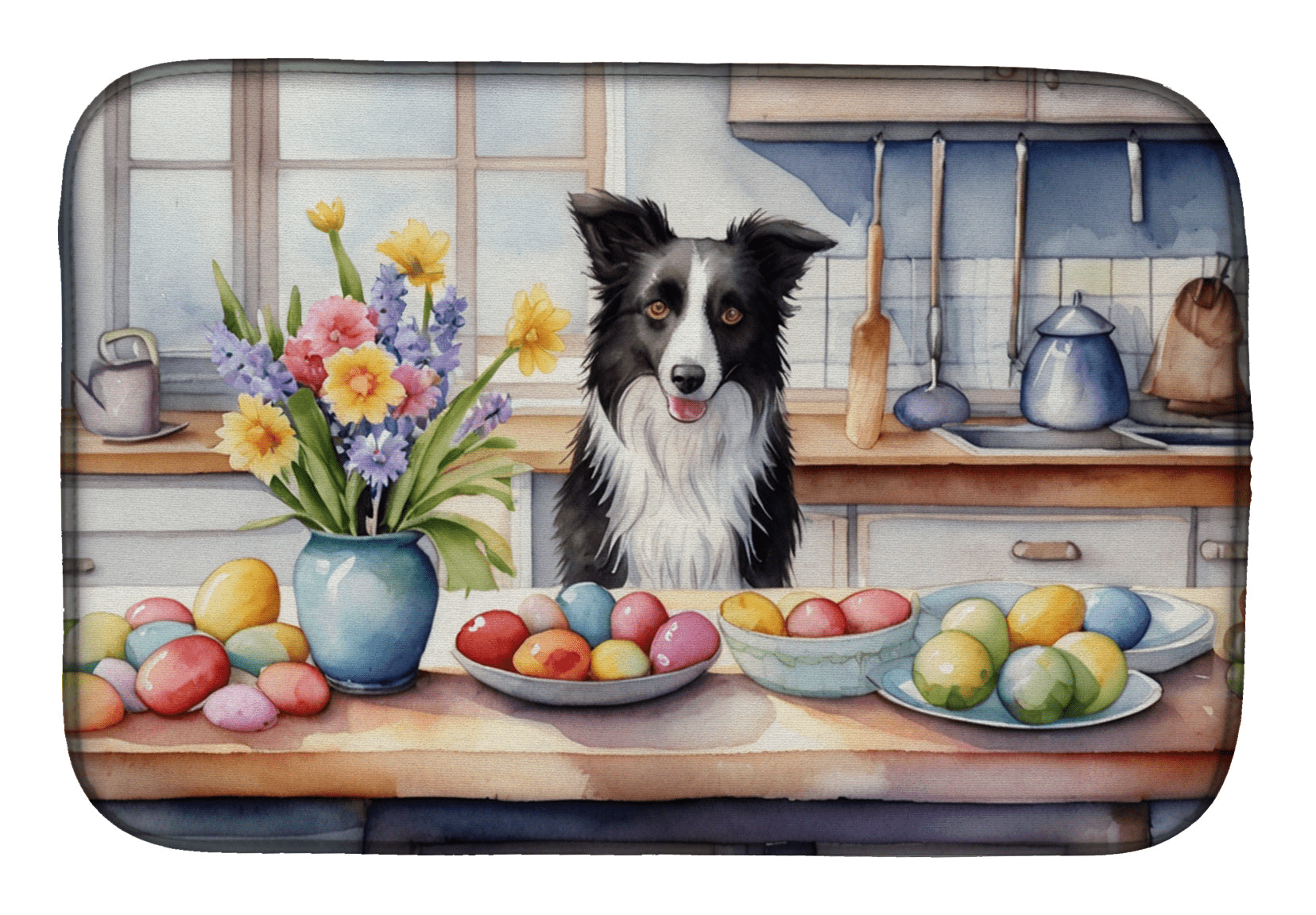 Decorating Easter Border Collie Dish Drying Mat