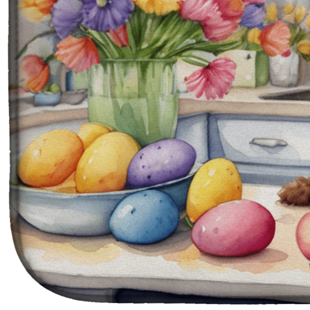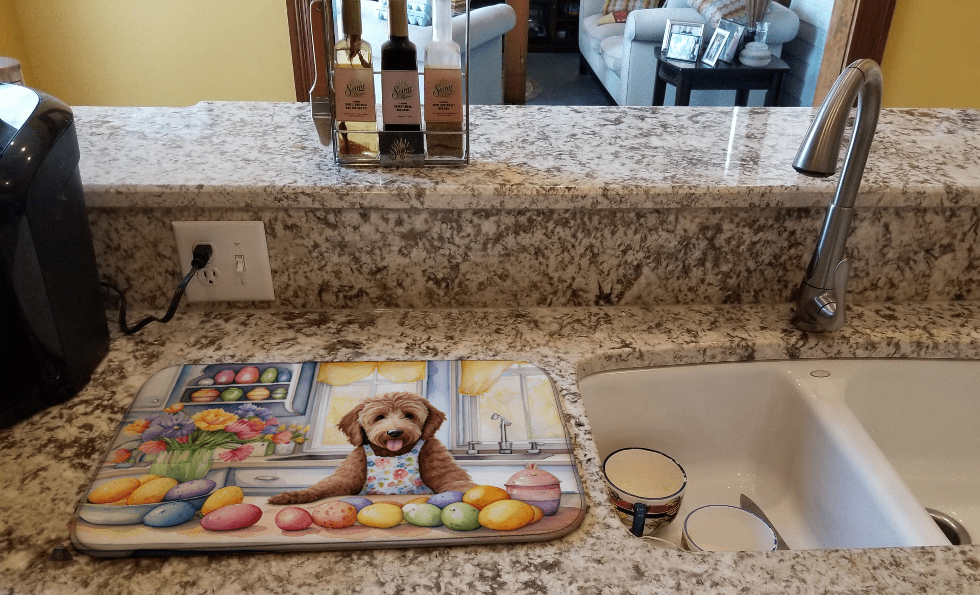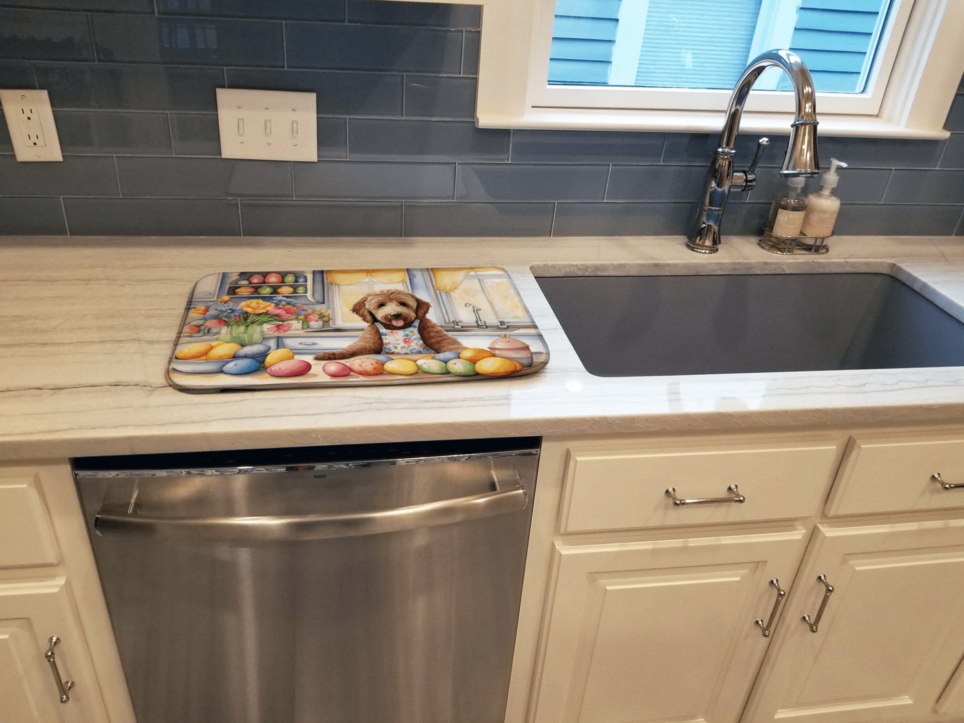 Elevate your kitchen routine with our Decorating Easter Labradoodle Dish Drying Mat. Designed to dry and protect countertops, this mat brings a playful, breed-inspired charm to everyday tasks. The plush, absorbent surface catches drips from dishes, glasses, and fruits, while the non-slip base keeps the mat steady during busy moments. Crafted in the USA with durable, washable materials, it's the perfect accessory for pet parents who want style + comfort in their kitchen.