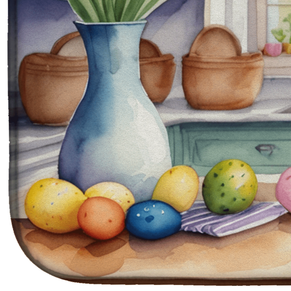 Decorating Easter Pointer Dish Drying Mat — 14 x 22 inch absorbent kitchen mat featuring Pointer artwork, non-slip backing, and machine washable care, printed in the USA.