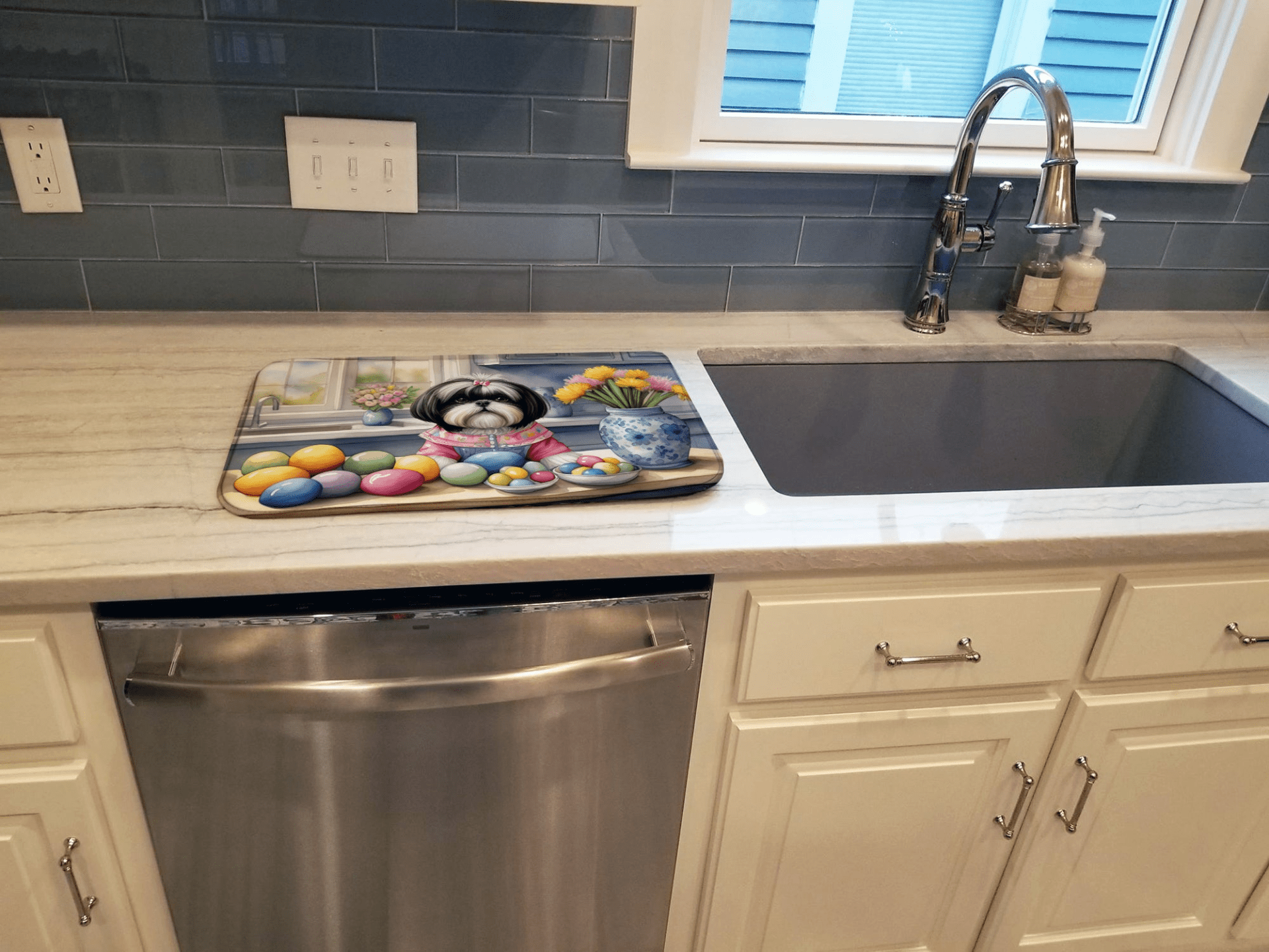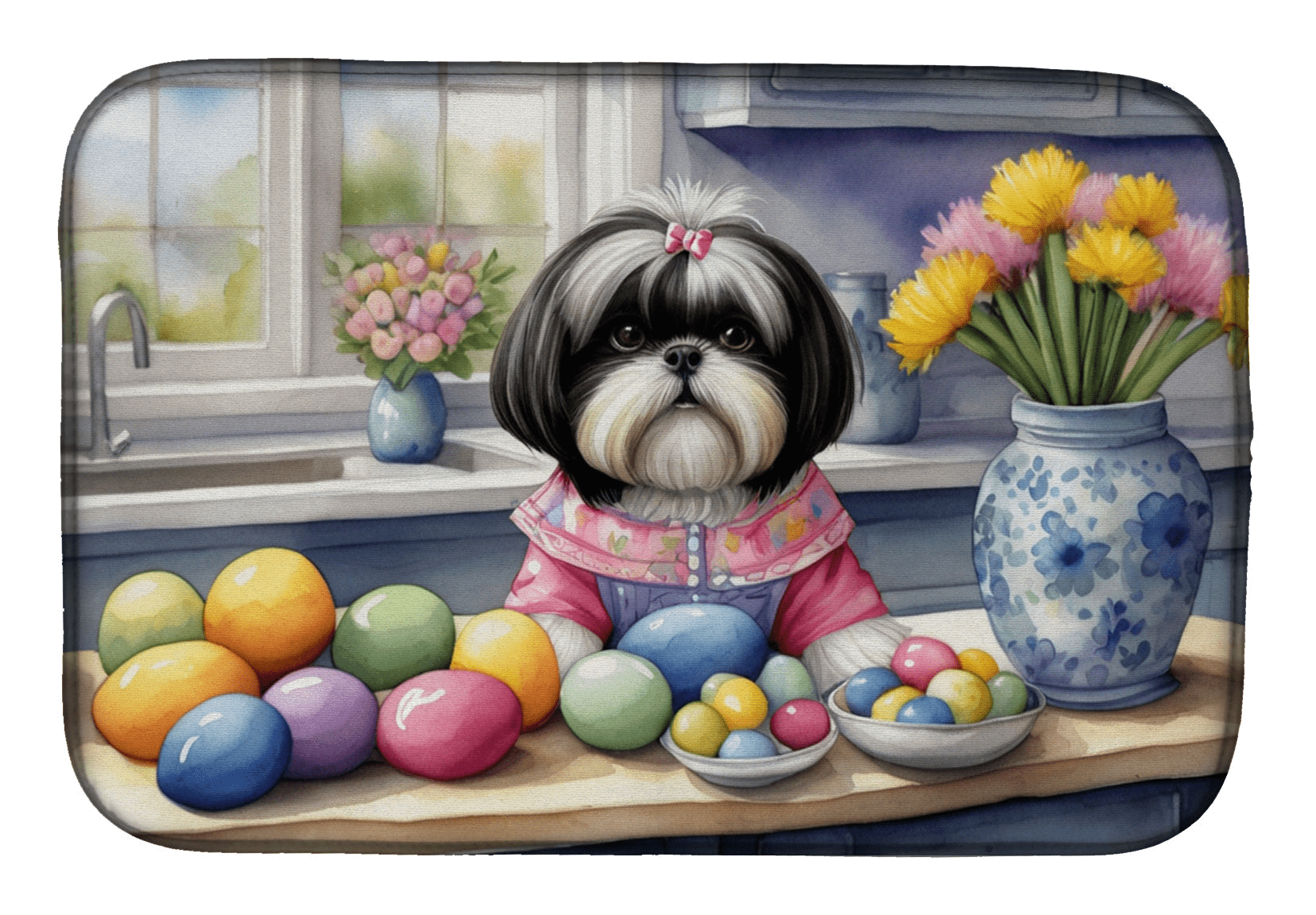 Decorating Easter Shih Tzu Dish Drying Mat