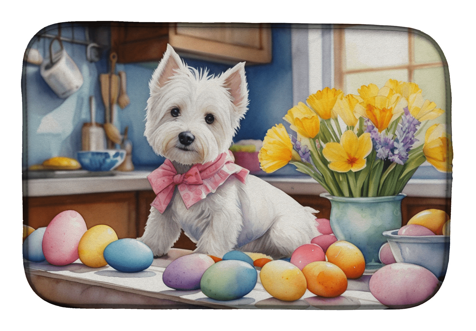 Decorating Easter Westie Dish Drying Mat