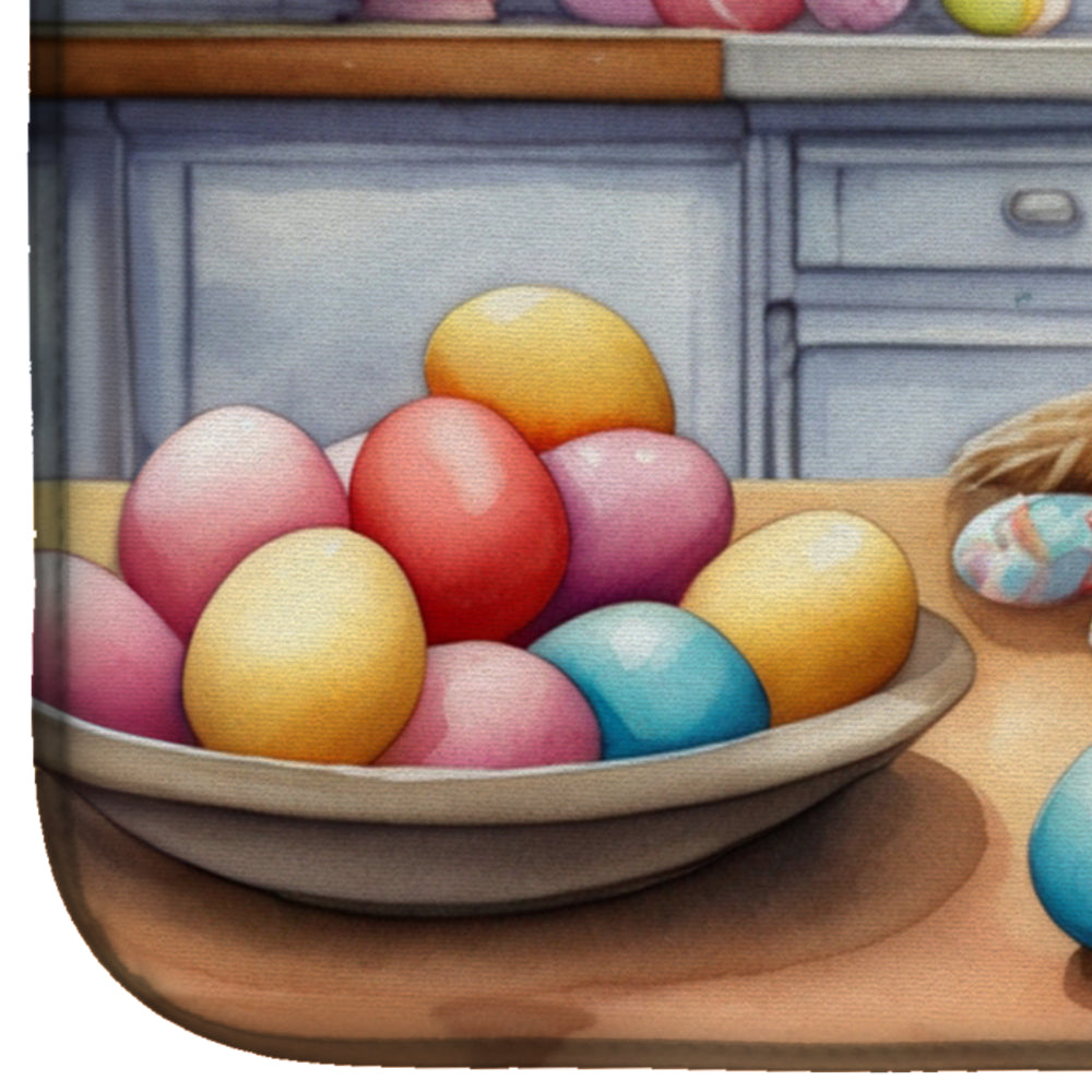Dish Drying Mat featuring breed specific Yorkshire Terrier artwork. Celebrate Easter with this Easter Dish Drying Mat. Say goodbye to messy countertops and soggy dish towels with our innovative dish drying mat. Our high-quality dish drying pad is designed to keep your countertops dry while offering a stylish and efficient solution. Whether you're air drying dishes, glasses, stemware, silverware, pots, pans, bottles, or even fruits and vegetables, our dish mat is the perfect choice. The 14 inches x 22 inches size fits most counters and dish drying racks, and the non-slip design ensures stability. Made with water-absorbent polyester and a polyurethane foam insert, our dish drying mat is not only functional but also durable. It's machine washable and printed in the USA for long-lasting use. The beautiful artwork adds flair to your kitchen decor, making it a perfect housewarming gift or present for any occasion. Upgrade your kitchen experience with our absorbent and versatile dish drying mat.