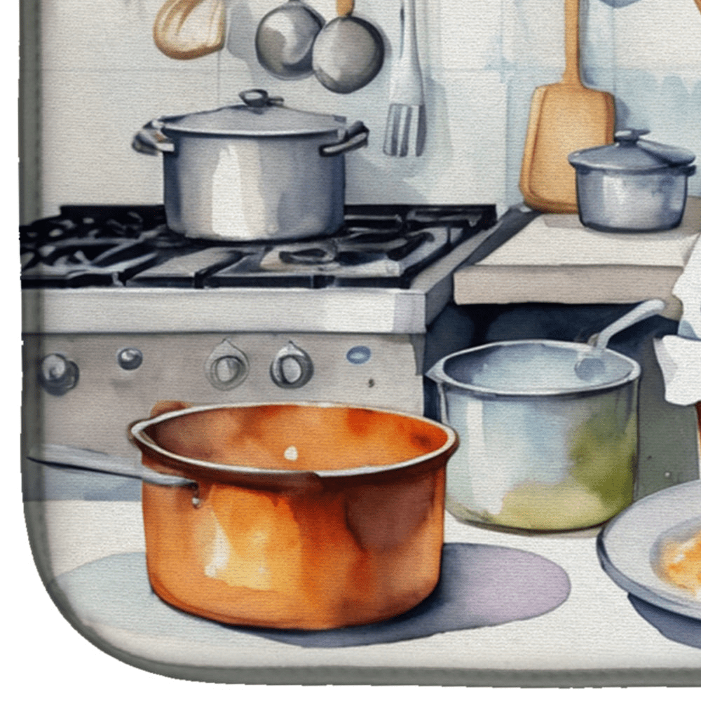 Elevate your kitchen routine with our English Foxhound The Chef Dish Drying Mat. This hardworking mat keeps countertops dry while adding a touch of canine charm. Perfect for daily dish-washing tasks, it accommodates plates, glasses, pots, and even fruits, all while showcasing breed-inspired art that shines on your counters. Your kitchen will feel organized, stylish, and welcoming.