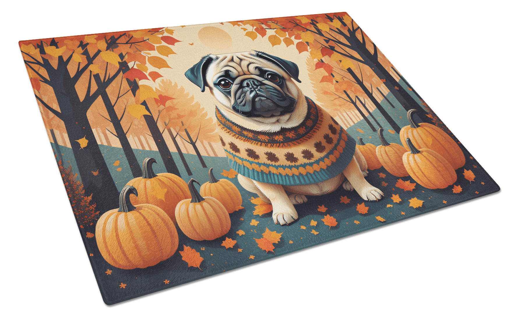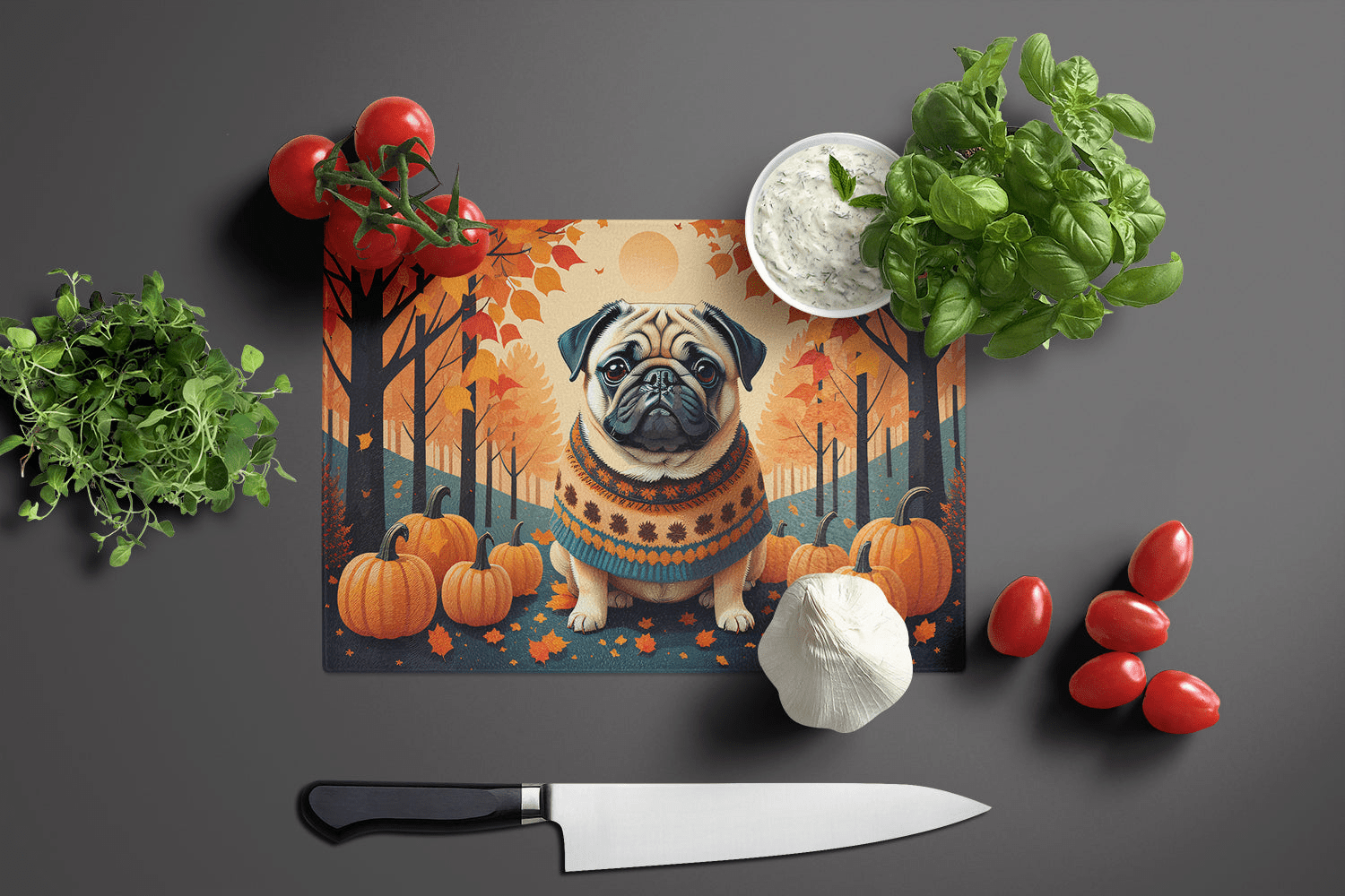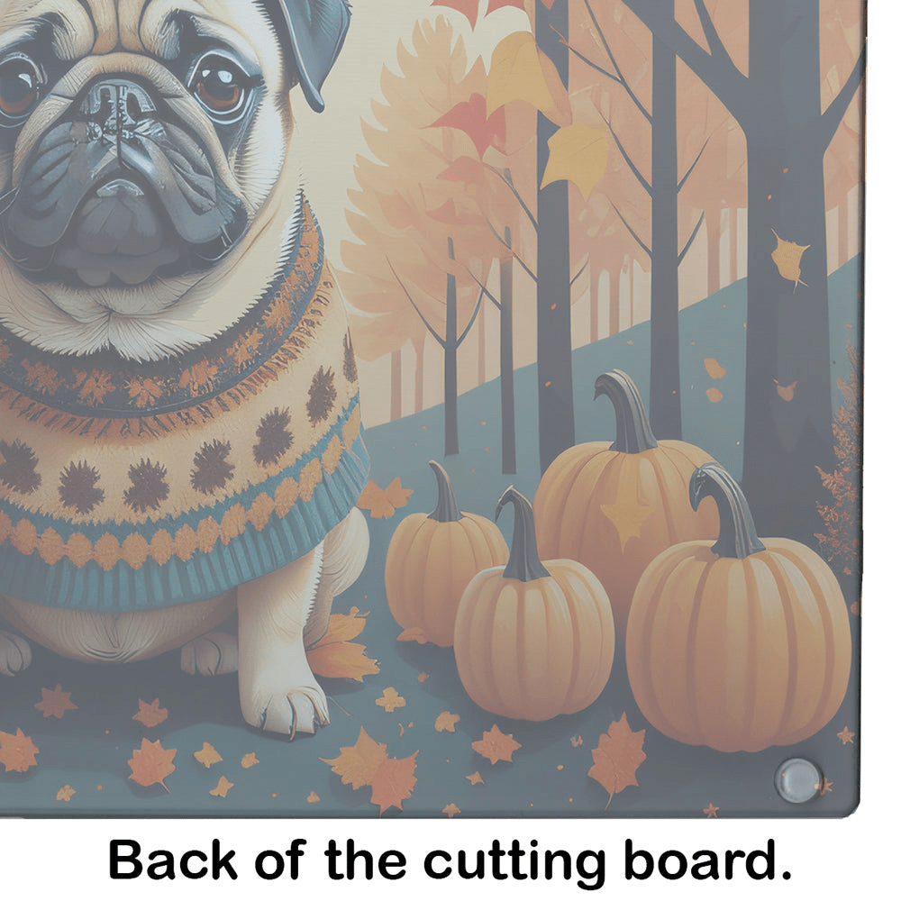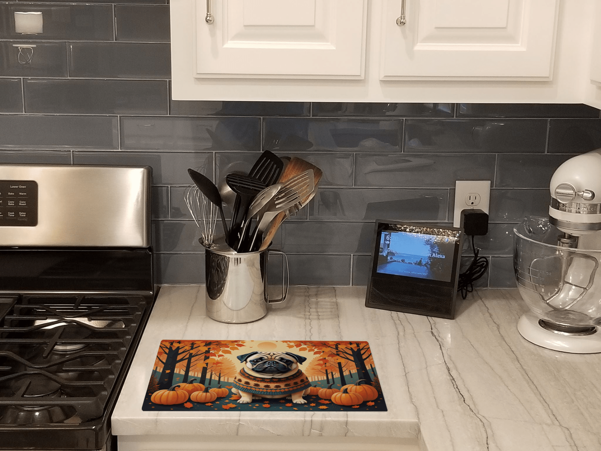 Glass Cutting Board featuring breed specific Pug artwork. Introduce your kitchen to the vibrant, large Decorative Glass Cutting Board from Caroline's Treasures. Crafted from resilient tempered glass, this board is not only a utilitarian necessity but also a colorful art piece. With its generous dimensions of 15 inches in height and 12 inches in length, it offers ample space for all your cutting needs. Every piece showcases captivating artwork from distinguished artists, bringing an aesthetic edge to your kitchen. Beyond its attractive design, this cutting board ensures your countertop stays pristine and unscathed, owing to its heat-resistant properties. Engineered with user convenience in mind, it features non-skid feet for stability, and rounded corners for additional safety. Its robust construction renders it virtually unbreakable, guaranteeing longevity. The board comes with protective feet bumpers, maintaining its position during use. This product is recommended to be hand washed only. Proudly printed and assembled in the United States, this cutting board exemplifies superior craftsmanship. With Caroline's Treasures' Decorative Glass Cutting Board, you're investing in a blend of functionality and artistic flair.