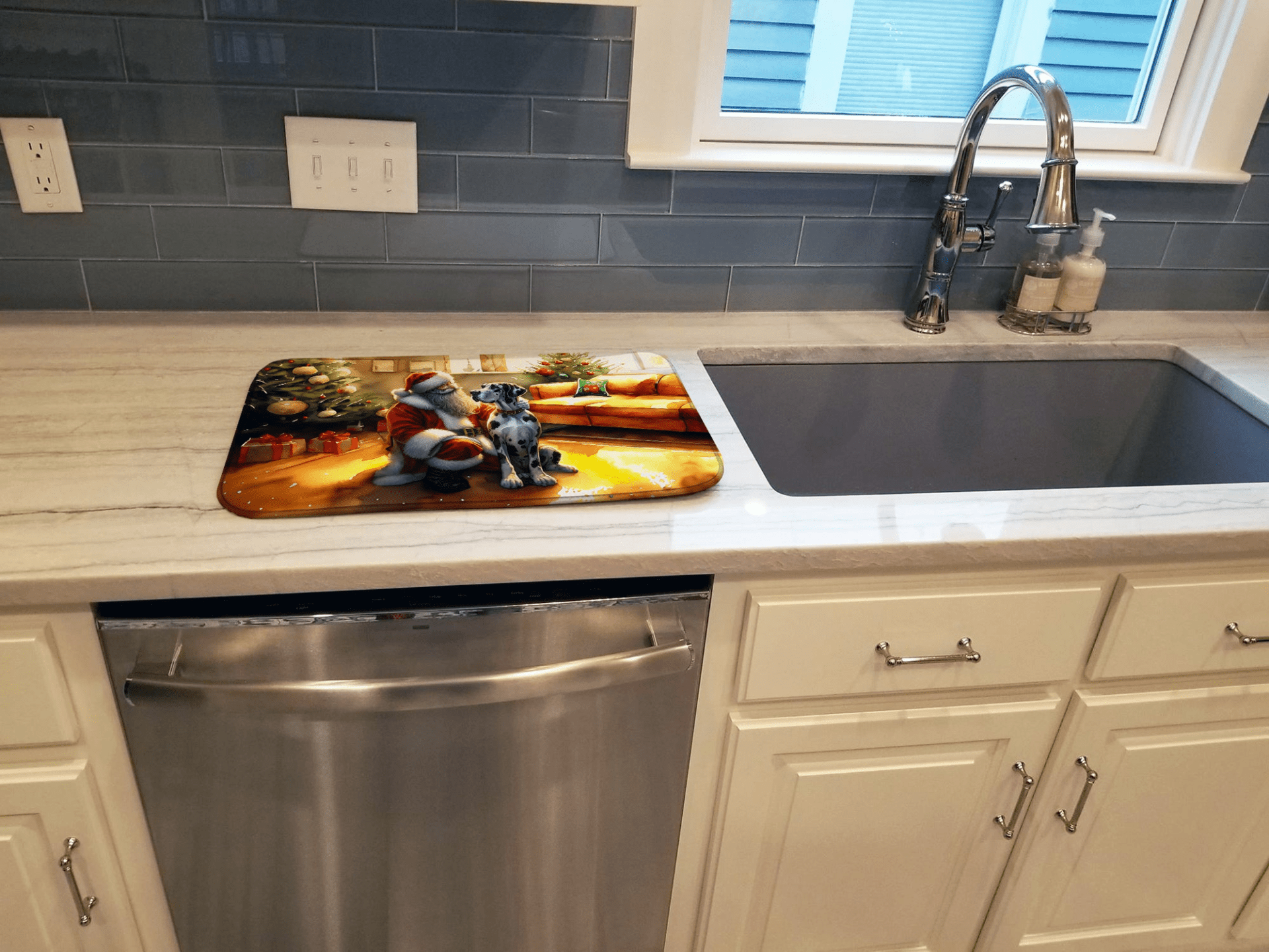 Great Dane and Santa Claus Dish Drying Mat