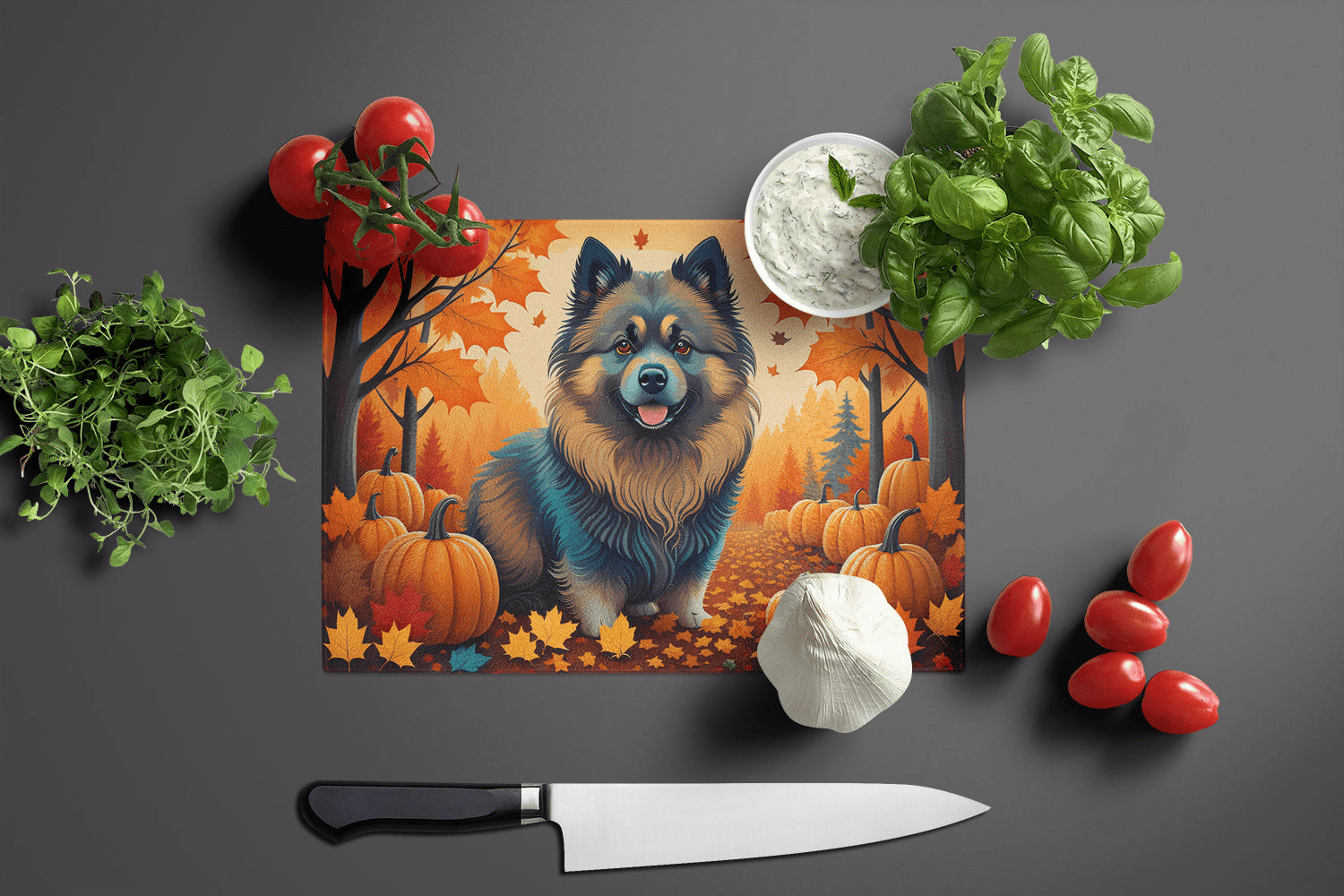 Glass Cutting Board featuring breed specific Keeshond artwork. Introduce your kitchen to the vibrant, large Decorative Glass Cutting Board from Caroline's Treasures. Crafted from resilient tempered glass, this board is not only a utilitarian necessity but also a colorful art piece. With its generous dimensions of 15 inches in height and 12 inches in length, it offers ample space for all your cutting needs. Every piece showcases captivating artwork from distinguished artists, bringing an aesthetic edge to your kitchen. Beyond its attractive design, this cutting board ensures your countertop stays pristine and unscathed, owing to its heat-resistant properties. Engineered with user convenience in mind, it features non-skid feet for stability, and rounded corners for additional safety. Its robust construction renders it virtually unbreakable, guaranteeing longevity. The board comes with protective feet bumpers, maintaining its position during use. This product is recommended to be hand washed only. Proudly printed and assembled in the United States, this cutting board exemplifies superior craftsmanship. With Caroline's Treasures' Decorative Glass Cutting Board, you're investing in a blend of functionality and artistic flair.