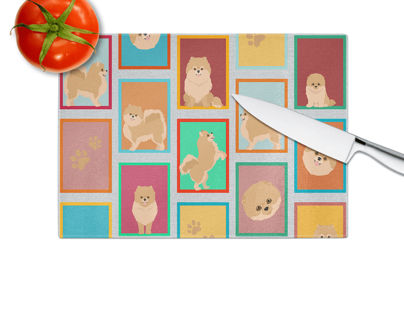 Glass Cutting Board featuring breed specific Pomeranian artwork. Introduce your kitchen to the vibrant, large Decorative Glass Cutting Board from Caroline's Treasures. Crafted from resilient tempered glass, this board is not only a utilitarian necessity but also a colorful art piece. With its generous dimensions of 15 inches in height and 12 inches in length, it offers ample space for all your cutting needs. Every piece showcases captivating artwork from distinguished artists, bringing an aesthetic edge to your kitchen. Beyond its attractive design, this cutting board ensures your countertop stays pristine and unscathed, owing to its heat-resistant properties. Engineered with user convenience in mind, it features non-skid feet for stability, and rounded corners for additional safety. Its robust construction renders it virtually unbreakable, guaranteeing longevity. The board comes with protective feet bumpers, maintaining its position during use. This product is recommended to be hand washed only. Proudly printed and assembled in the United States, this cutting board exemplifies superior craftsmanship. With Caroline's Treasures' Decorative Glass Cutting Board, you're investing in a blend of functionality and artistic flair.