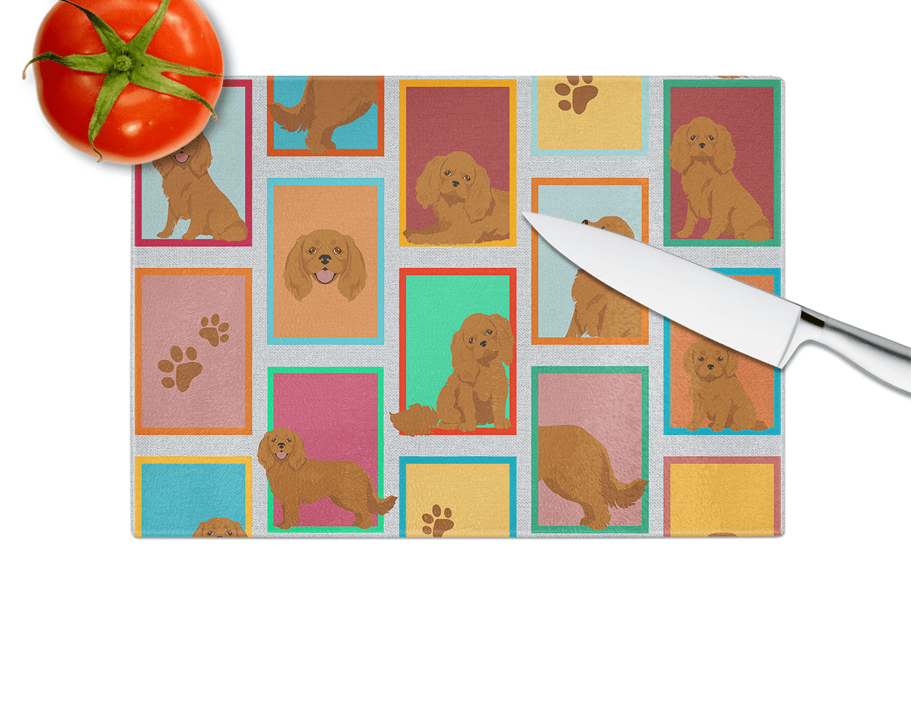 Glass Cutting Board featuring breed specific Cavalier King Charles Spaniel artwork. Introduce your kitchen to the vibrant, large Decorative Glass Cutting Board from Caroline's Treasures. Crafted from resilient tempered glass, this board is not only a utilitarian necessity but also a colorful art piece. With its generous dimensions of 15 inches in height and 12 inches in length, it offers ample space for all your cutting needs. Every piece showcases captivating artwork from distinguished artists, bringing an aesthetic edge to your kitchen. Beyond its attractive design, this cutting board ensures your countertop stays pristine and unscathed, owing to its heat-resistant properties. Engineered with user convenience in mind, it features non-skid feet for stability, and rounded corners for additional safety. Its robust construction renders it virtually unbreakable, guaranteeing longevity. The board comes with protective feet bumpers, maintaining its position during use. This product is recommended to be hand washed only. Proudly printed and assembled in the United States, this cutting board exemplifies superior craftsmanship. With Caroline's Treasures' Decorative Glass Cutting Board, you're investing in a blend of functionality and artistic flair.