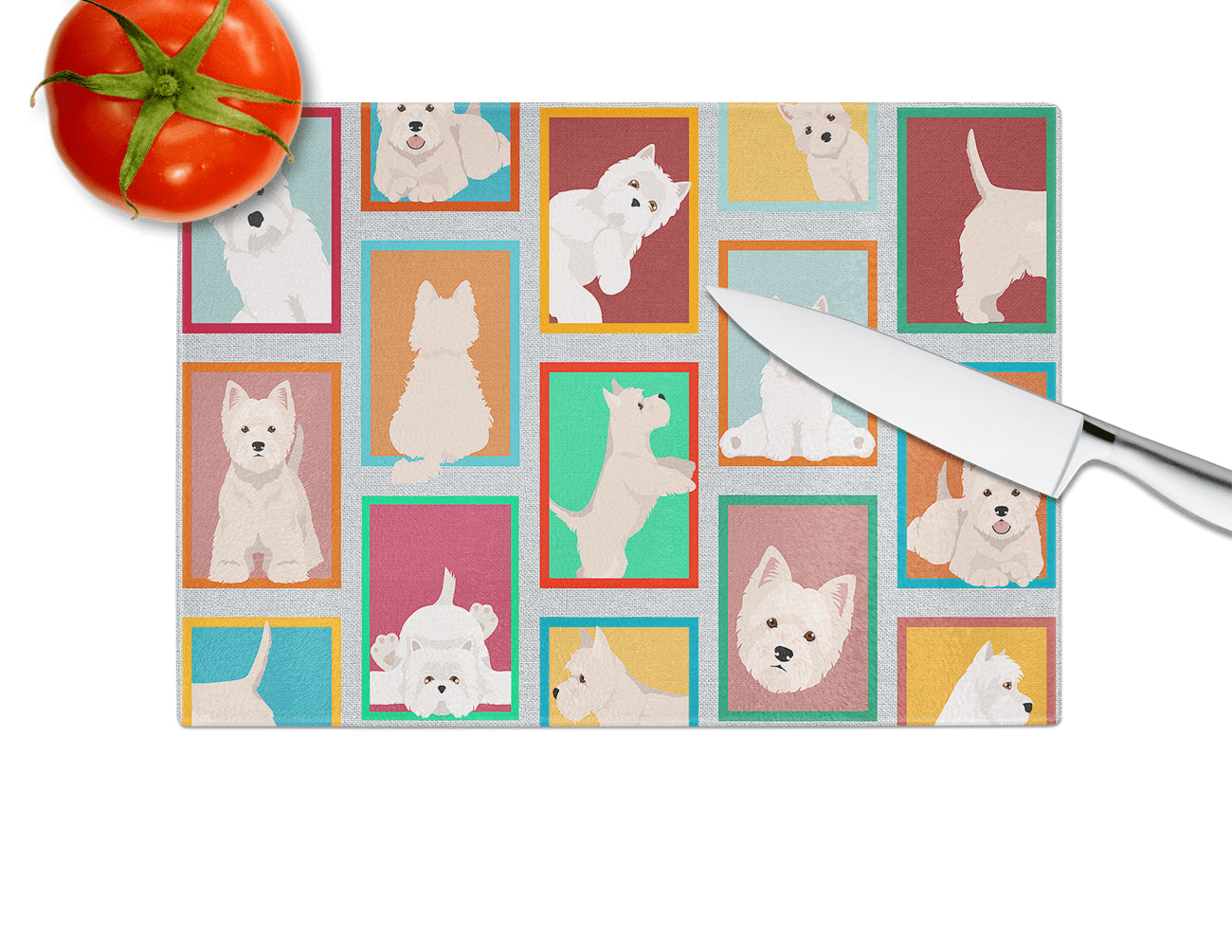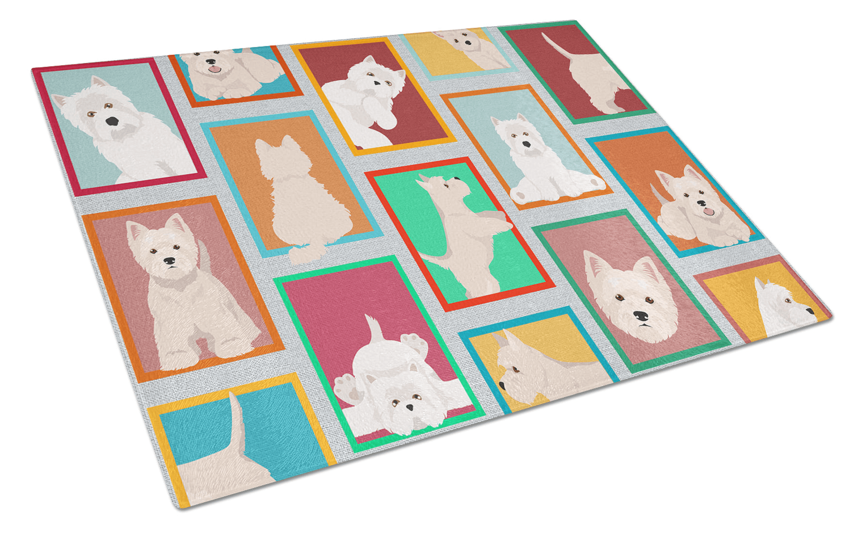 Glass Cutting Board featuring breed specific Westie artwork. Introduce your kitchen to the vibrant, large Decorative Glass Cutting Board from Caroline's Treasures. Crafted from resilient tempered glass, this board is not only a utilitarian necessity but also a colorful art piece. With its generous dimensions of 15 inches in height and 12 inches in length, it offers ample space for all your cutting needs. Every piece showcases captivating artwork from distinguished artists, bringing an aesthetic edge to your kitchen. Beyond its attractive design, this cutting board ensures your countertop stays pristine and unscathed, owing to its heat-resistant properties. Engineered with user convenience in mind, it features non-skid feet for stability, and rounded corners for additional safety. Its robust construction renders it virtually unbreakable, guaranteeing longevity. The board comes with protective feet bumpers, maintaining its position during use. This product is recommended to be hand washed only. Proudly printed and assembled in the United States, this cutting board exemplifies superior craftsmanship. With Caroline's Treasures' Decorative Glass Cutting Board, you're investing in a blend of functionality and artistic flair.