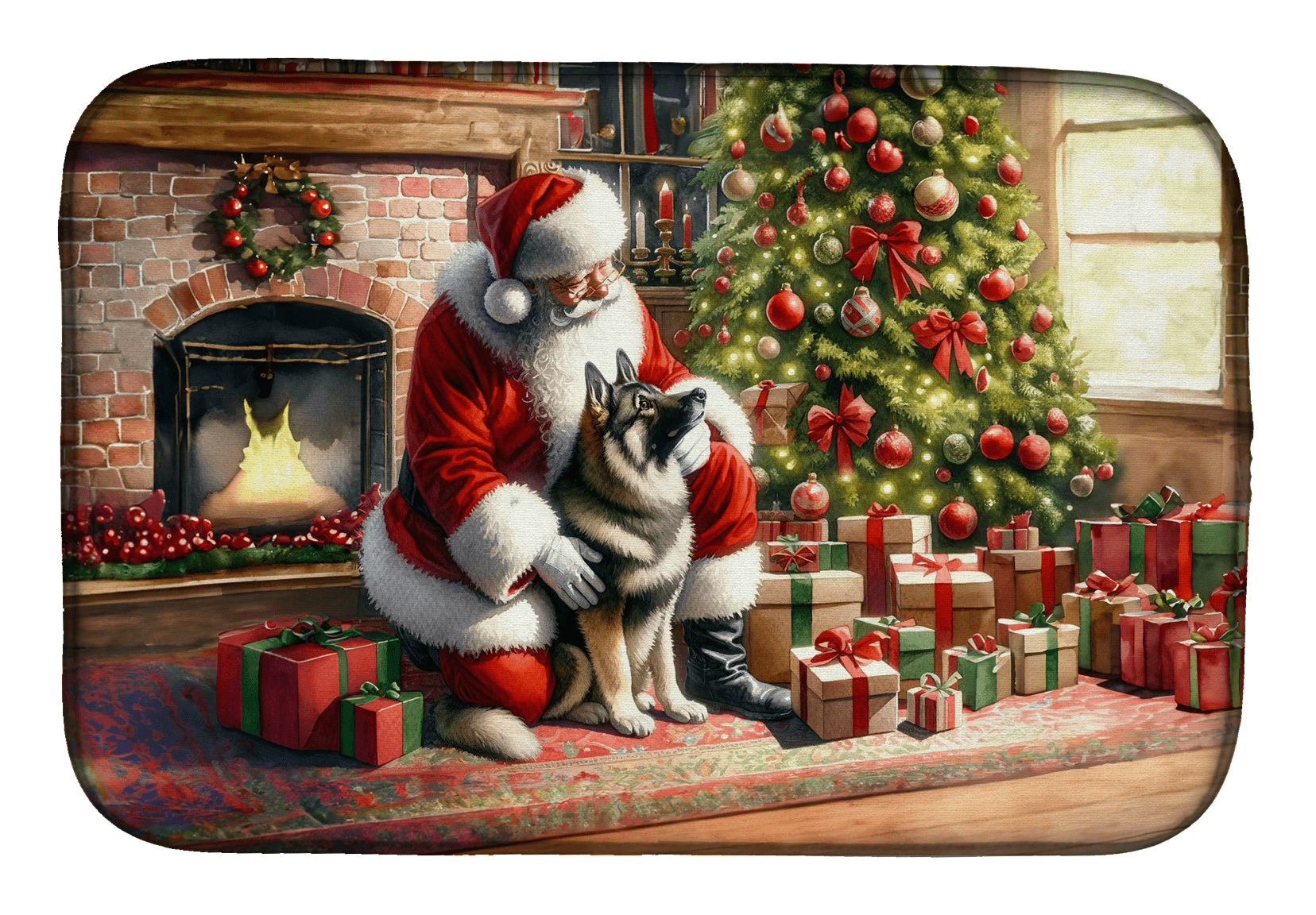 Norwegian Elkhound and Santa Claus Dish Drying Mat
