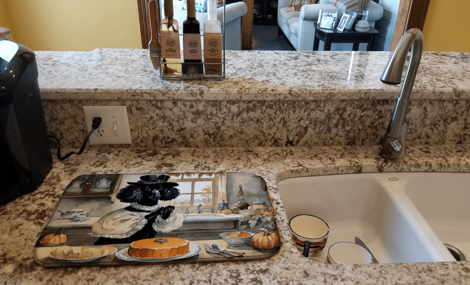 Meet the Poodle Fall Kitchen Pumpkins Dish Drying Mat, a stylish blend of function and whimsy for your everyday kitchen. Designed to absorb moisture and protect countertops as you air dry dishes, glasses, and even fruits, it keeps your space tidy and chic. The 14x22 inch pad features breed-specific Poodle artwork with a warm Fall motif, making it perfect for both everyday use and seasonal gatherings. Your kitchen will feel more polished, and you’ll love the practical luxury it brings to busy moments at home.