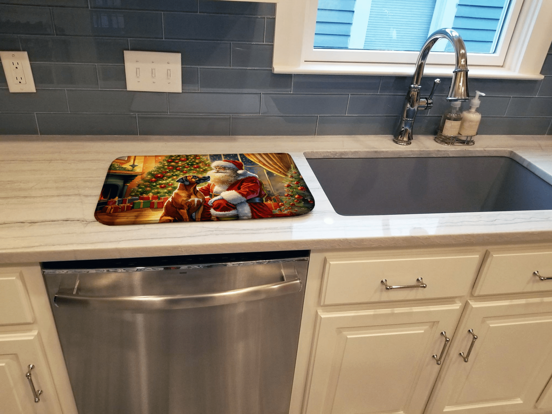 Rhodesian Ridgeback and Santa Claus Dish Drying Mat