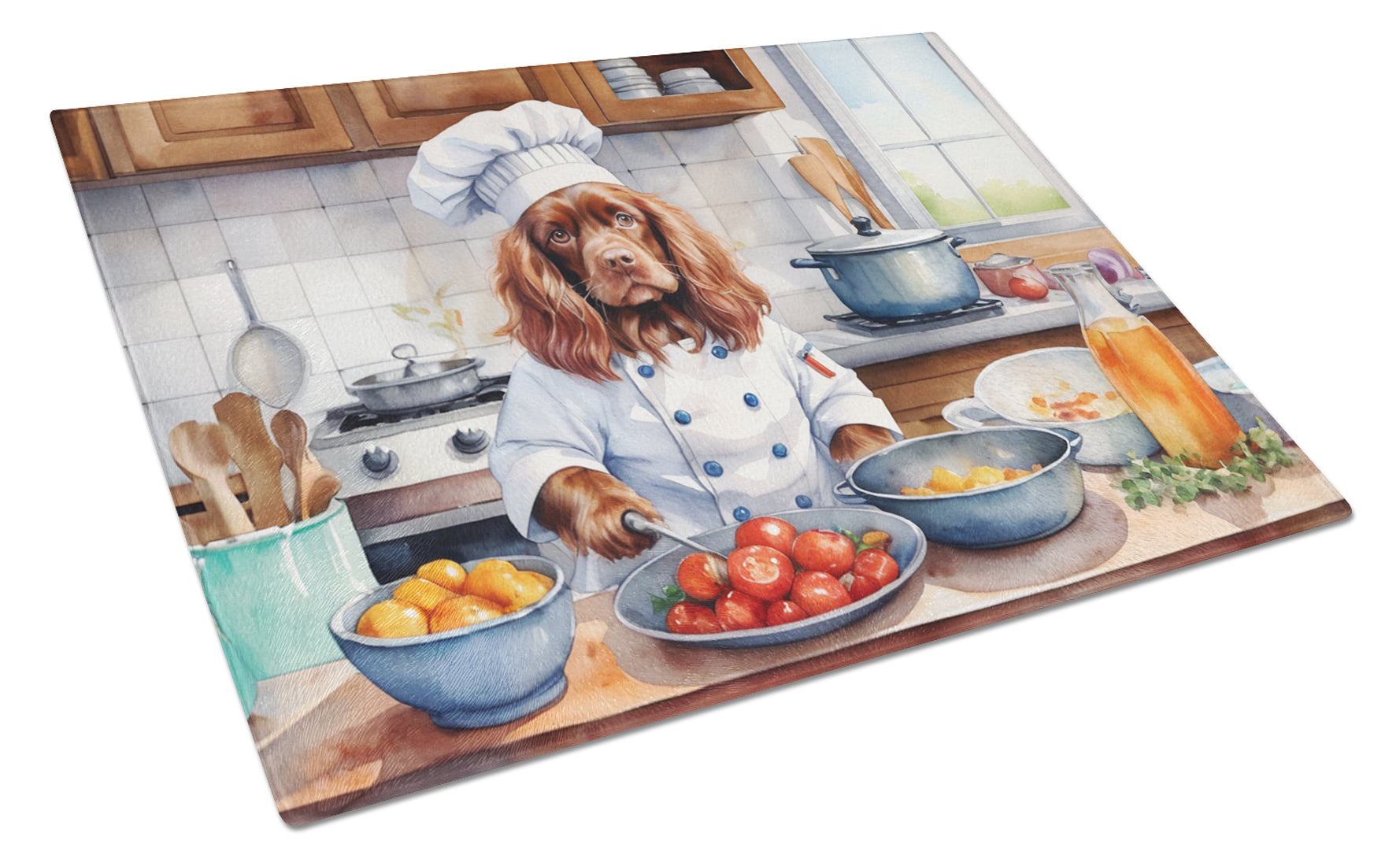 Glass Cutting Board featuring breed specific Sussex Spaniel artwork. Introduce your kitchen to the vibrant, large Decorative Glass Cutting Board from Caroline's Treasures. Crafted from resilient tempered glass, this board is not only a utilitarian necessity but also a colorful art piece. With its generous dimensions of 15 inches in height and 12 inches in length, it offers ample space for all your cutting needs. Every piece showcases captivating artwork from distinguished artists, bringing an aesthetic edge to your kitchen. Beyond its attractive design, this cutting board ensures your countertop stays pristine and unscathed, owing to its heat-resistant properties. Engineered with user convenience in mind, it features non-skid feet for stability, and rounded corners for additional safety. Its robust construction renders it virtually unbreakable, guaranteeing longevity. The board comes with protective feet bumpers, maintaining its position during use. This product is recommended to be hand washed only. Proudly printed and assembled in the United States, this cutting board exemplifies superior craftsmanship. With Caroline's Treasures' Decorative Glass Cutting Board, you're investing in a blend of functionality and artistic flair.