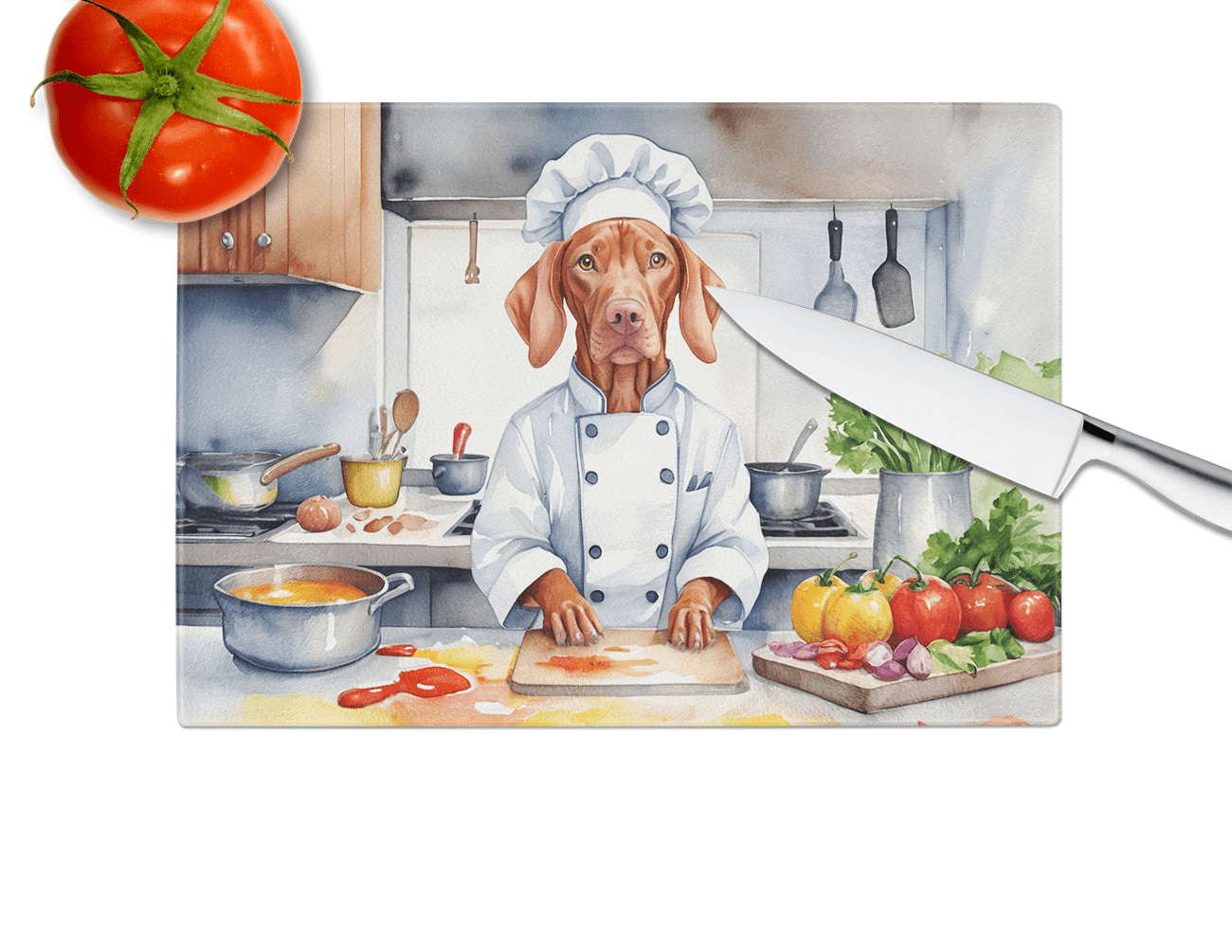 Glass Cutting Board featuring breed specific Vizsla artwork. Introduce your kitchen to the vibrant, large Decorative Glass Cutting Board from Caroline's Treasures. Crafted from resilient tempered glass, this board is not only a utilitarian necessity but also a colorful art piece. With its generous dimensions of 15 inches in height and 12 inches in length, it offers ample space for all your cutting needs. Every piece showcases captivating artwork from distinguished artists, bringing an aesthetic edge to your kitchen. Beyond its attractive design, this cutting board ensures your countertop stays pristine and unscathed, owing to its heat-resistant properties. Engineered with user convenience in mind, it features non-skid feet for stability, and rounded corners for additional safety. Its robust construction renders it virtually unbreakable, guaranteeing longevity. The board comes with protective feet bumpers, maintaining its position during use. This product is recommended to be hand washed only. Proudly printed and assembled in the United States, this cutting board exemplifies superior craftsmanship. With Caroline's Treasures' Decorative Glass Cutting Board, you're investing in a blend of functionality and artistic flair.