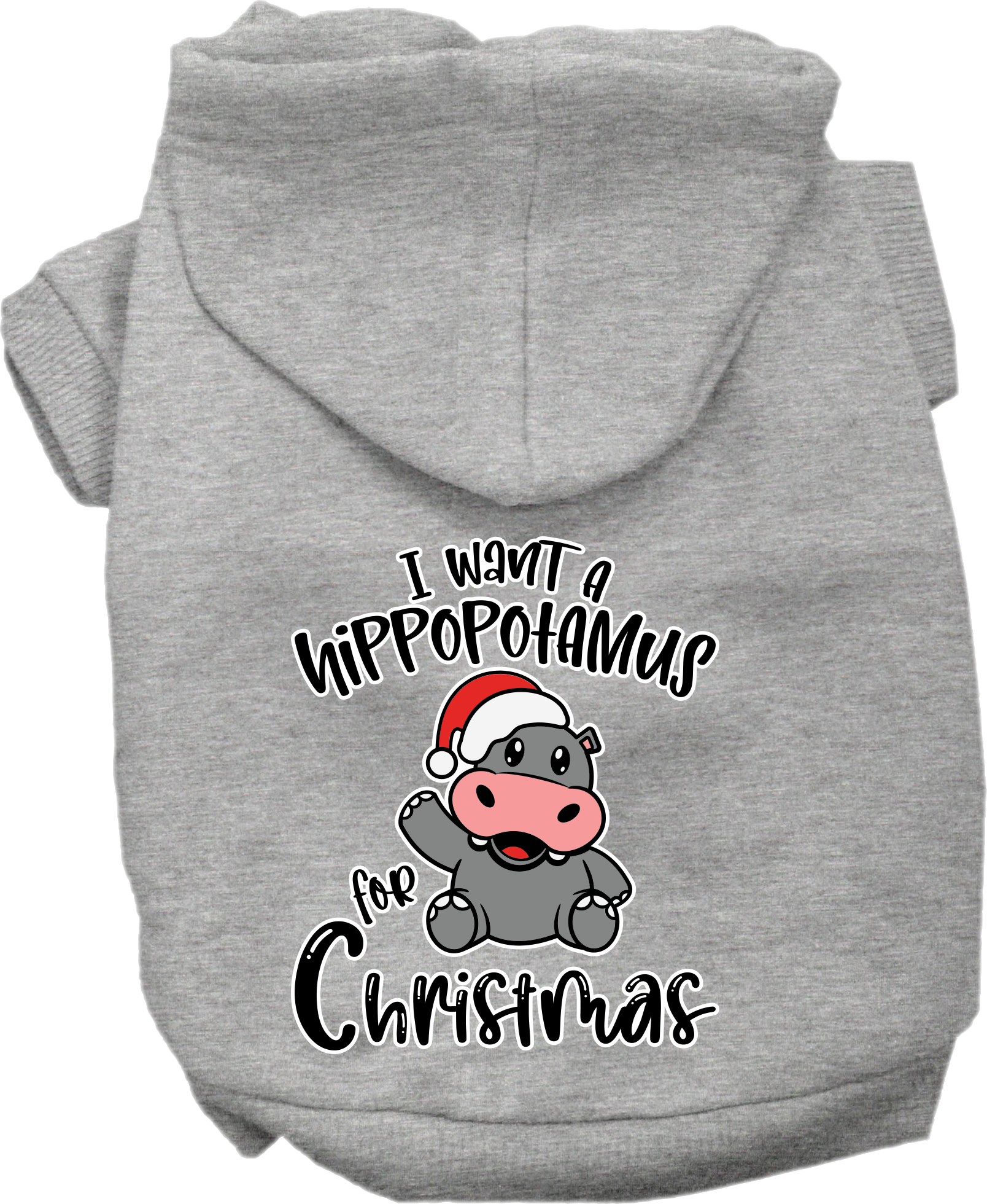 Hippo for Christmas Screen Print Dog Hoodie Grey Size LG is backordered and will ship as soon as it is back in stock.