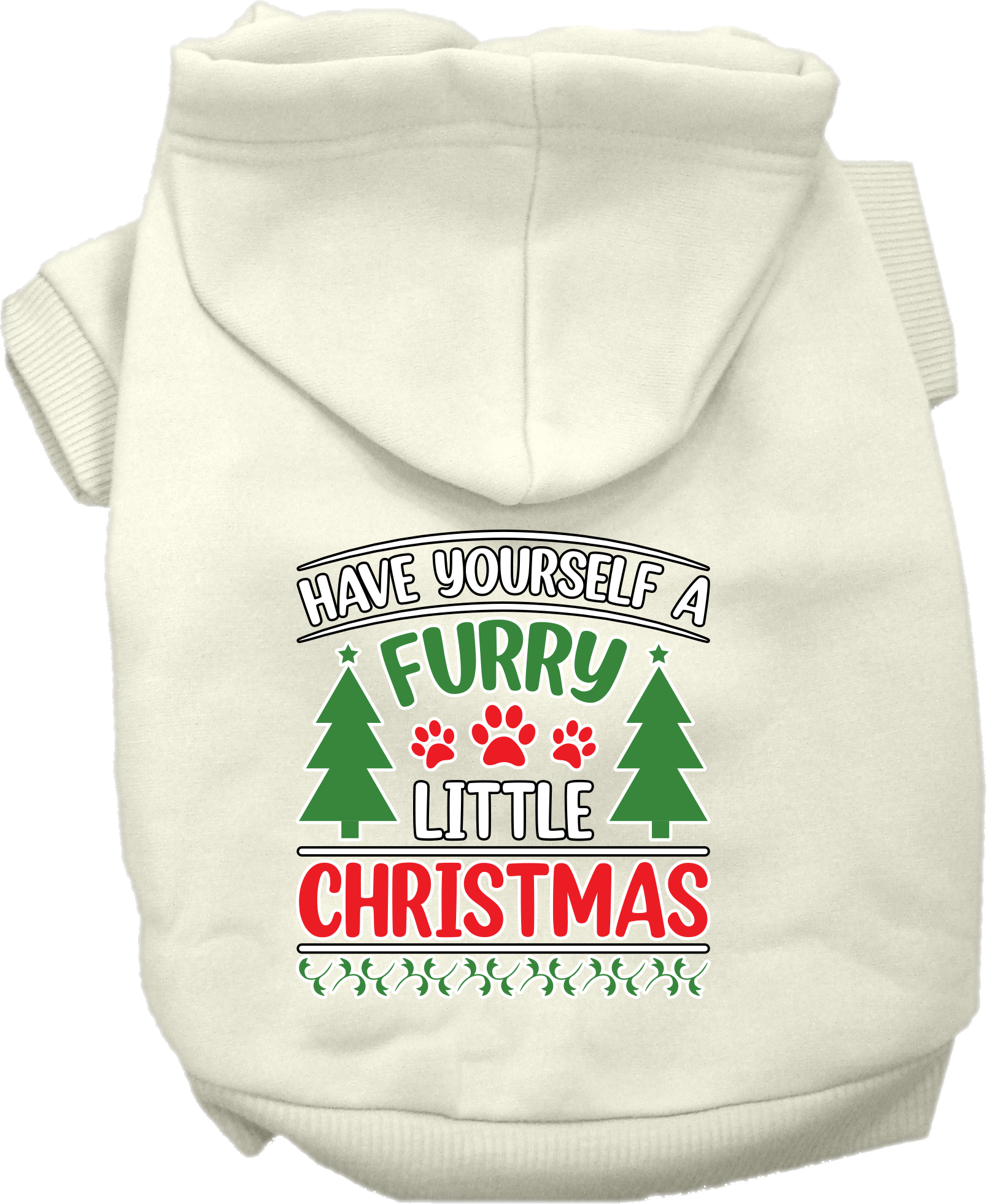 Furry Little Christmas Screen Print Dog Hoodie Cream Size SM is backordered and will ship as soon as it is back in stock.