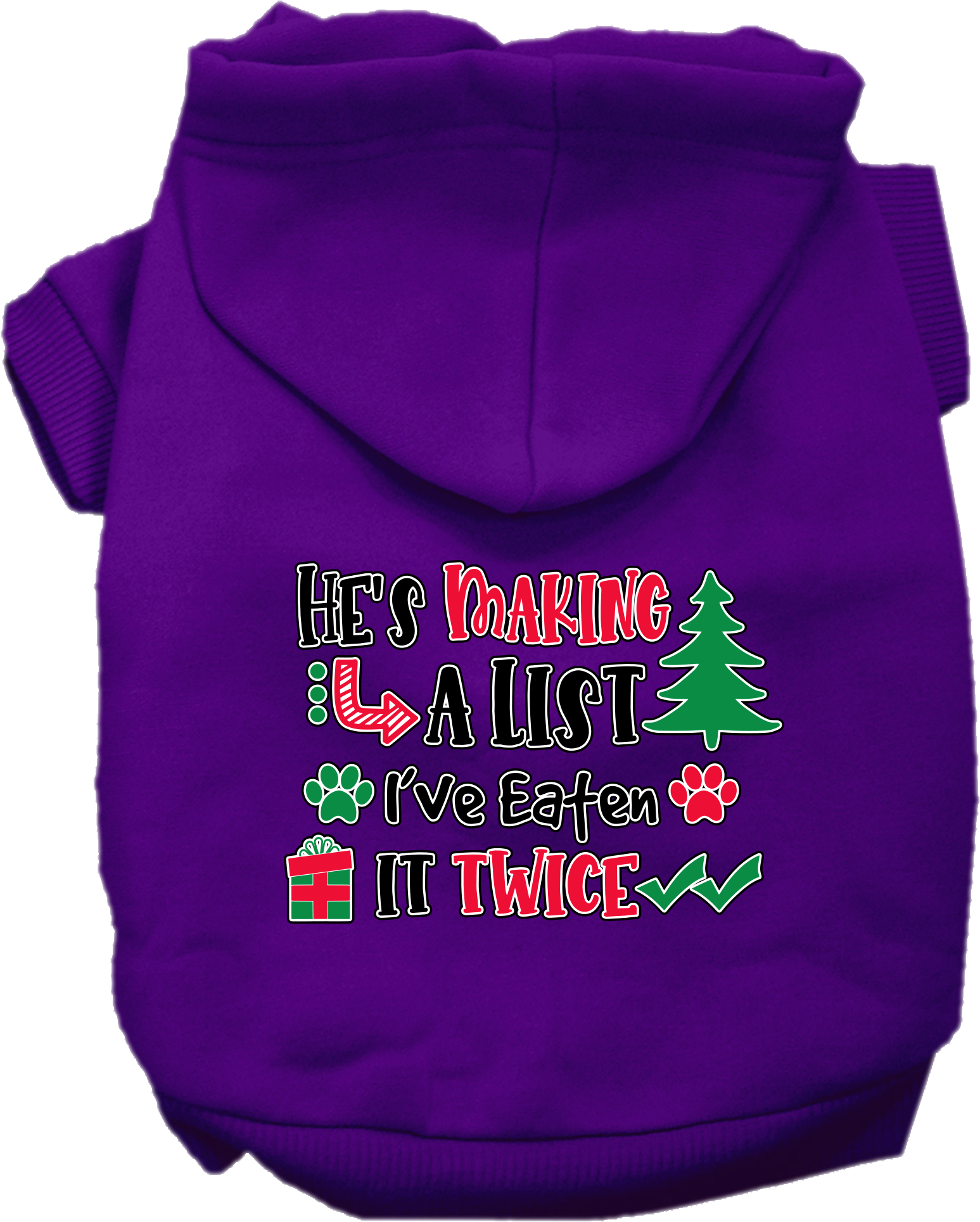 He's Making a List... Screen Print Dog Hoodie Purple Size LG
