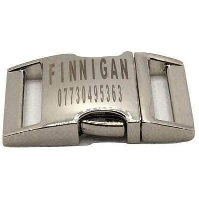 Elevate your dog's style with Finnigan's Designer Dog Collar No.19m. Handmade with care, this collar is practical, stylish, and customisable for medium to large breeds. Crafted from 100% cotton, it features adjustable webbing and durable aluminium hardware. Personalise it with a custom-engraved aluminium buckle for a unique touch. Remember to maintain the metal quick-release buckle regularly for safety.