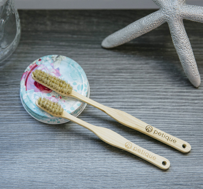 Petique's Eco-Friendly Bamboo Pet Toothbrush is sustainable and extremely effective when it comes to brushing your pet's teeth. It takes your pets oral hygiene to the next level! The bristles are made of boar's hair bristles, which don't break down quickly like synthetic ones do and they clean your pet's teeth a lot better too! The sleek handle is made of natural durable bamboo. Its the ecological way to keep your pets mouth fresh for just as long as a normal toothbrush, and help the environment at the same time!
