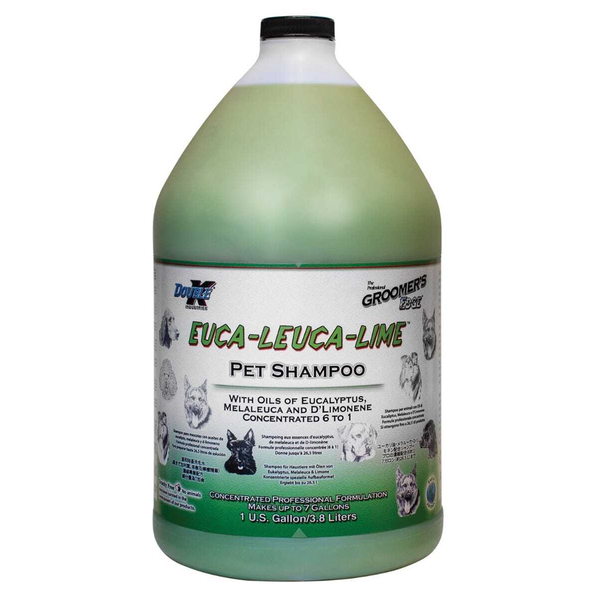 Groomer s Edge Euca Leuca Lime Shampoo relieves dry skin and fleabite dermatitis. Contains eucalyptus, d Limonene, and tea tree oil. Gallon size of shampoo dilutes 6 is to1.
