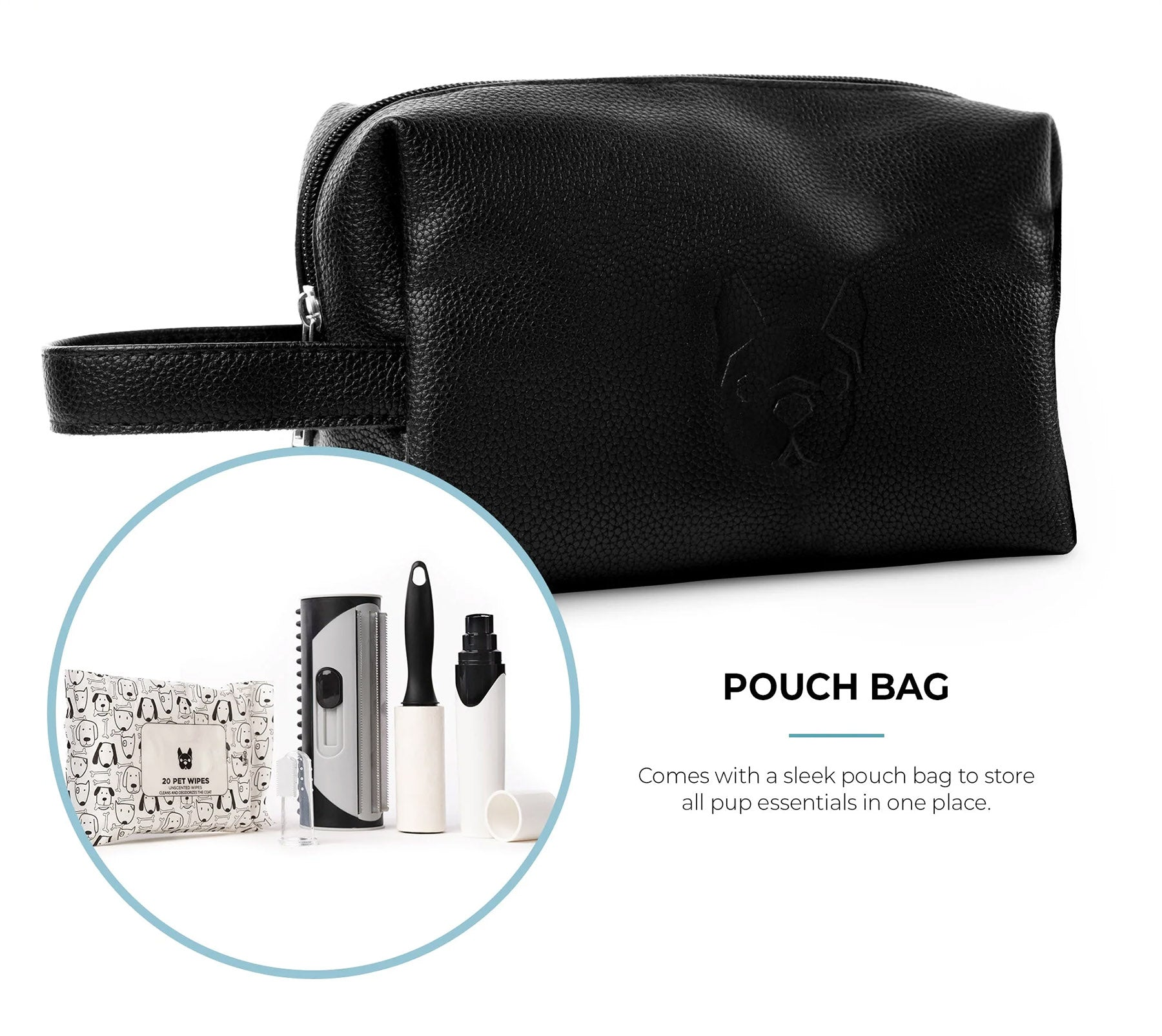 ✔️ Pet Wipes (20-Pack) – Unscented and hypoallergenic, perfect for wiping ears, paws, nose & more.