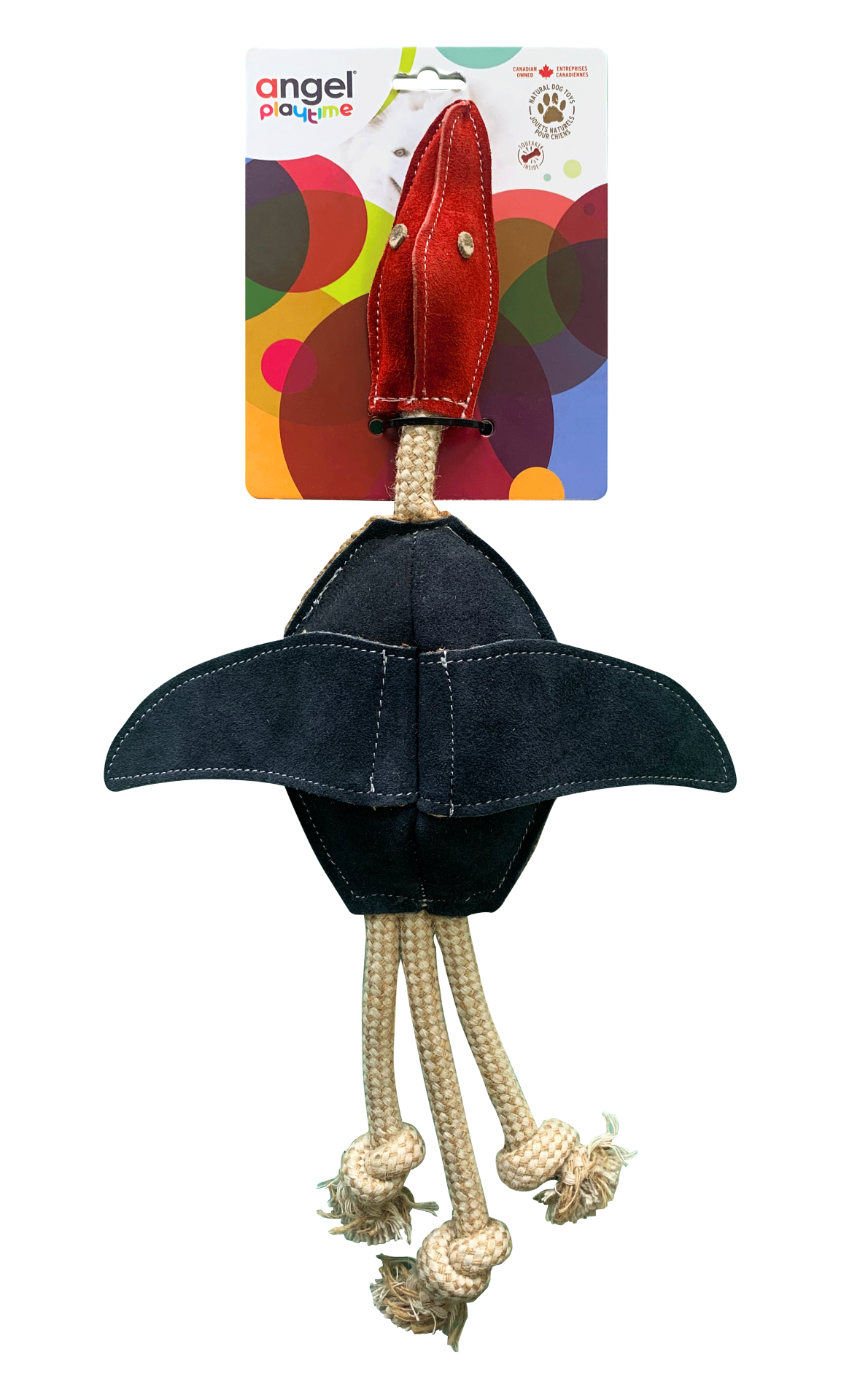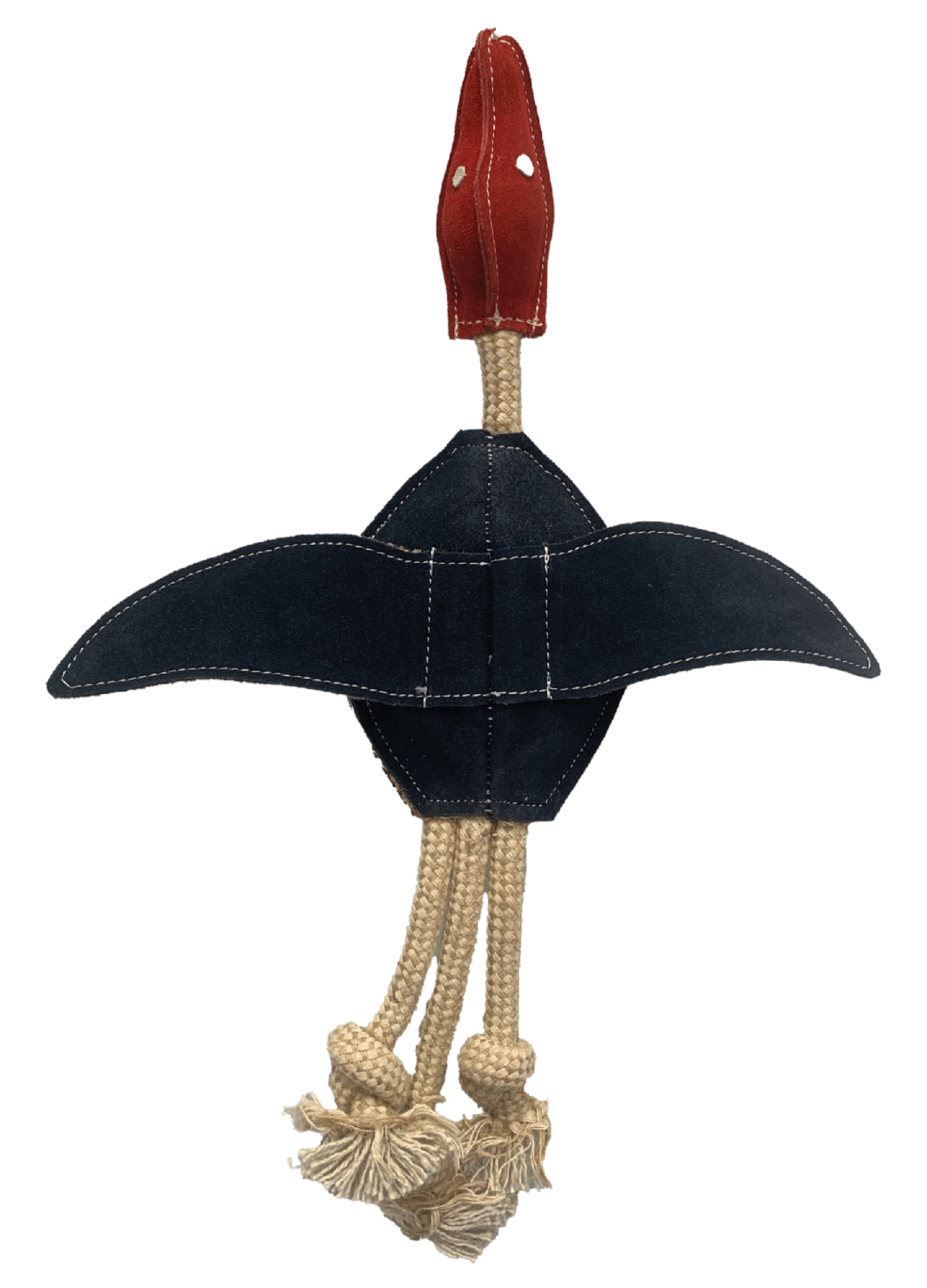The Canadian Loon Natural Dog Toy is perfect for Medium- Large Breeds and was created to keep your dog entertained and stimulated. Toss, Tug, Fetch, Play or train, this adorable creation is handmade with the highest quality raw materials. Made of Natural Jute, Cotton rope and suede, the generously thick body has a squeaker for extra fun and a great shape for bedtime cuddles. Vegetable- based dyes only. Designed to promote healthy exercise and make dogs happy!