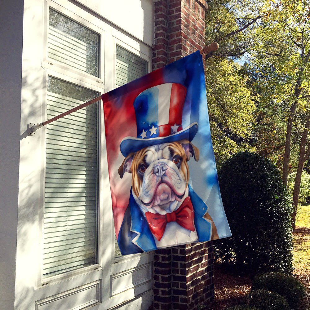 House Flag featuring breed specific English Bulldog artwork. Presenting our Heavy Duty Polyester House Size Decorative Sleeve Pole Flag, a vibrant addition to enhance the aesthetic appeal of your home. This large decorative flag, measuring approximately 28 x 40 inches, offers ample coverage and visibility. Each flag is meticulously sewn and made individually, ensuring a unique piece that may slightly vary in size. It's a sleeve pole flag, designed to fit a standard decorative flag pole effortlessly. Please note that the flag pole and bracket are not included and should be purchased separately. What sets our flag apart is its dual-sided print. The design is mirrored on both sides of the fabric, allowing for uniform visibility regardless of the angle. Printed in full color, our flag showcases vibrant hues that truly stand out. To ensure lasting vibrancy and durability, the dyes are heat-set into the fabric. This ensures your flag remains bright and captivating through various weather conditions. Elevate the look of your home with our Heavy Duty Polyester House Size Decorative Sleeve Pole Flag!