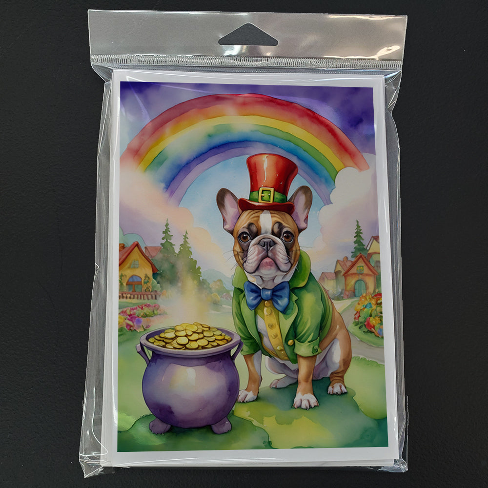 Greeting Cards Pack of 8 featuring breed specific French Bulldog artwork. Celebrate St Patrick's Day with this St Patrick's Day . Celebrate special moments with Caroline's Treasures Printed Greeting Card Pack. This pack includes eight beautifully folded 5x7 cards, accompanied by eight matching white envelopes. With blank interiors, these cards provide ample space for your personalized messages and heartfelt holiday greetings. Each card features captivating full-color artwork, meticulously printed in our facility on high-quality 80 lb cover stock or 216 GSM. The super smooth finish of the white cards enhances the visual impact of the artwork, creating a truly stunning presentation. Designed by our talented in-house artists or licensed artists, the artwork on these cards showcases their creativity and attention to detail. From vibrant illustrations to captivating designs, each card tells its own unique story. Whether it's for birthdays, anniversaries, holidays, or any special occasion, Caroline's Treasures Greeting Card Pack is the perfect way to convey your heartfelt sentiments. Share joy, love, and warm wishes with these exquisite cards and make every moment unforgettable.
