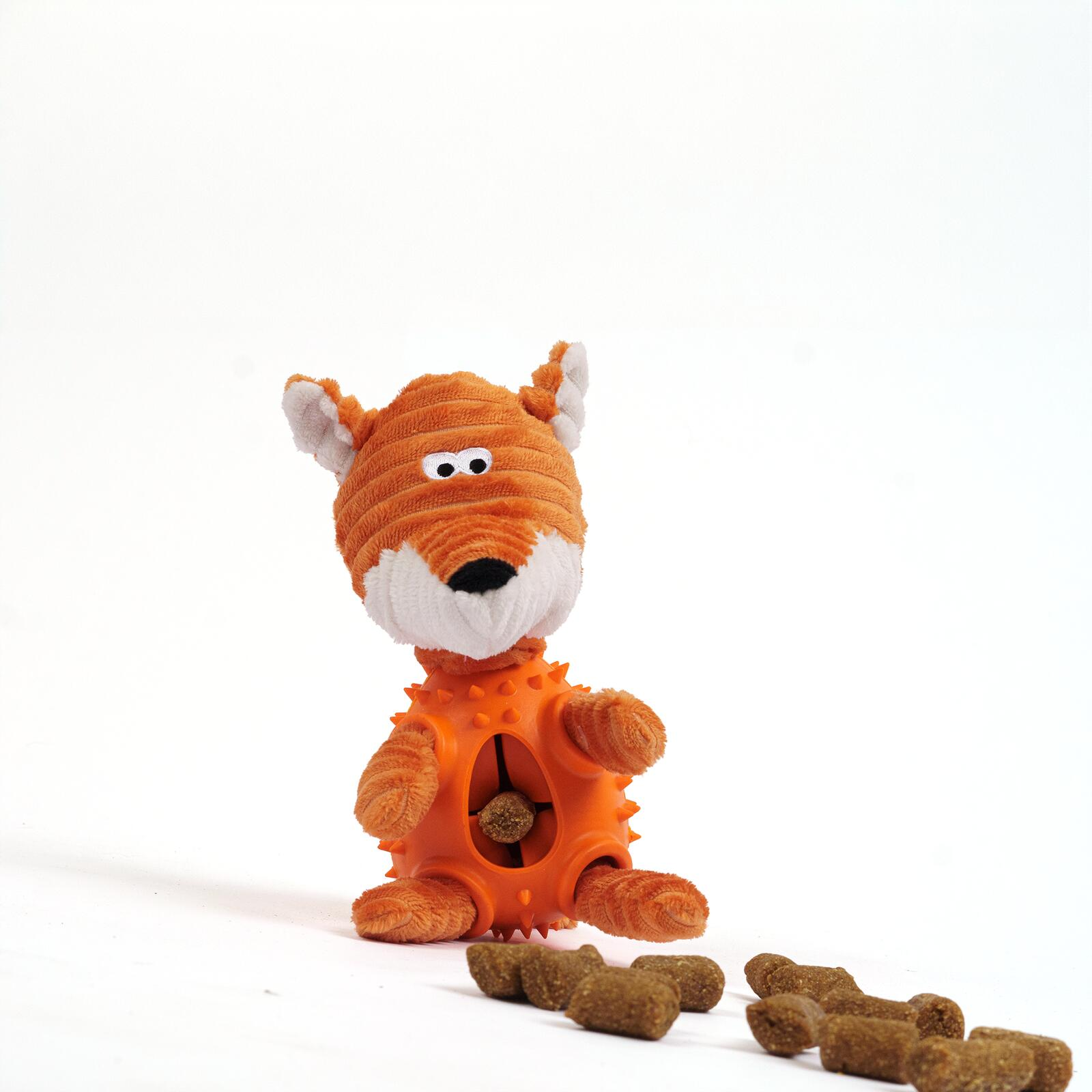 The One Paw Fox Plush Rubber Toy offers an engaging and interactive play experience for your pet. Crafted from durable rubber and 100% polyester with bonded canvas, this toy is built to withstand rough play and chewing. The treat dispenser feature adds an extra layer of fun, allowing you to hide your dog's favorite treats inside and keep them entertained for longer periods. The squeaky sound embedded within the toy enhances excitement and stimulates your pet's natural instincts to play and hunt. The plush exterior makes the toy soft and appealing, perfect for cuddling as well as active play. Measuring 9 inches, it is the ideal size for dogs of all breeds and sizes. The combination of tough rubber and soft plush materials provides a versatile toy that caters to your pet's different play needs.