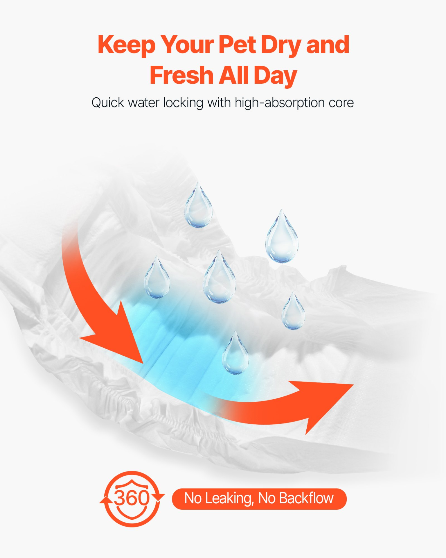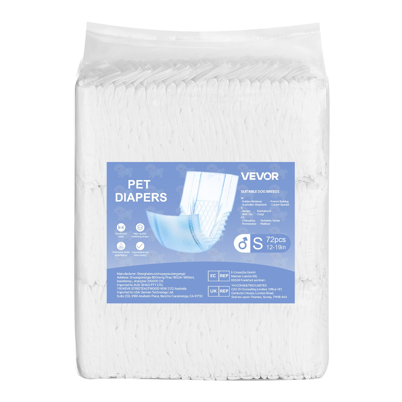 Keep your pup comfortable, clean, and confident with the VEVOR Disposable Male Dog Diapers, designed to provide reliable protection during house training, travel, marking, or incontinence. These high-quality belly bands feature a super-absorbent polymer core that locks in moisture, paired with a 360° leak-proof barrier to keep your floors, furniture, and your furry friend dry.