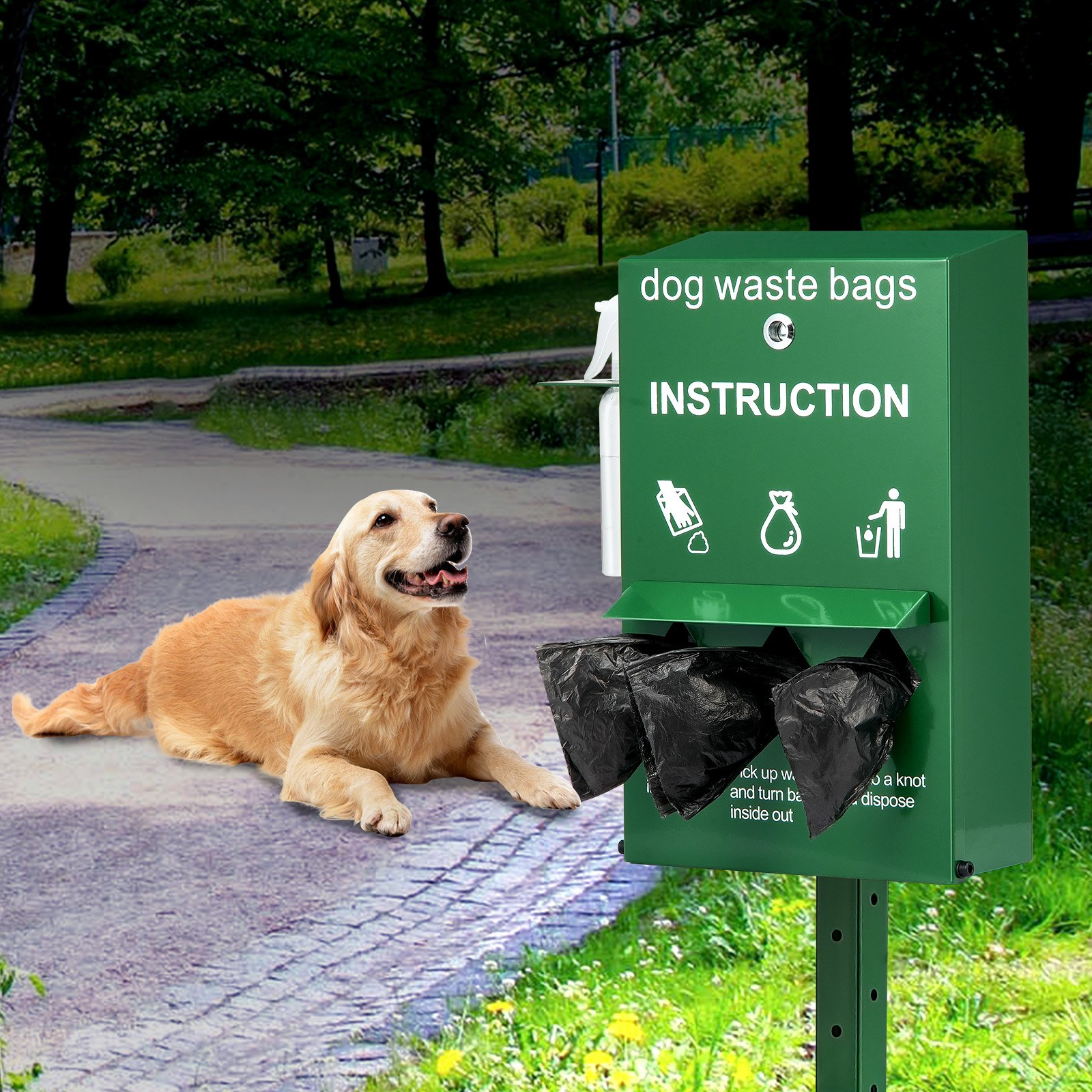 All-in-One Waste Station: Includes 600 dog waste bags and a refillable hand wash bottle.