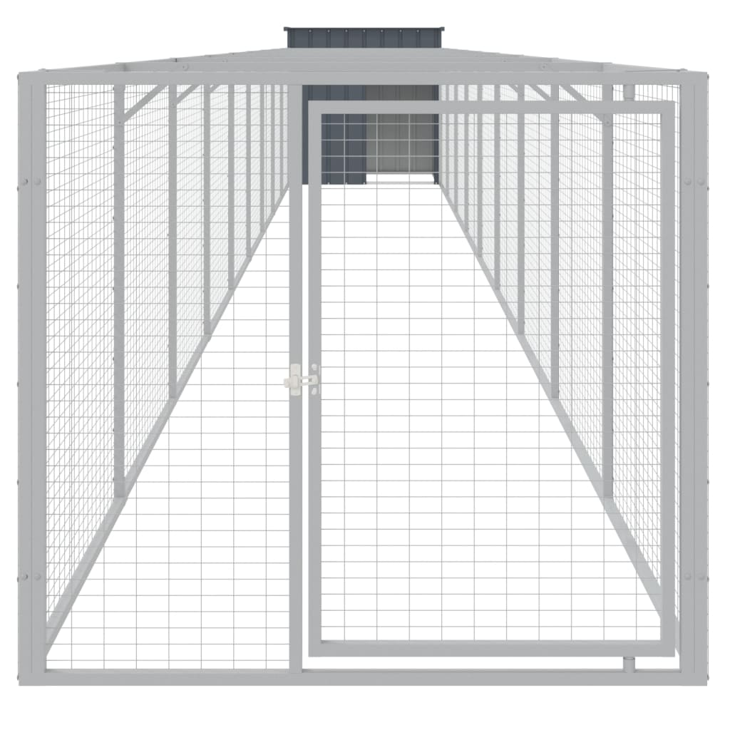 This Anthracite Dog House with Run offers a stylish shelter for large dogs. Made from tough galvanized steel, it can withstand the weather while providing a safe space for your furry friend to relax or play. Its contemporary style enhances any outdoor area, making it the perfect cozy spot.