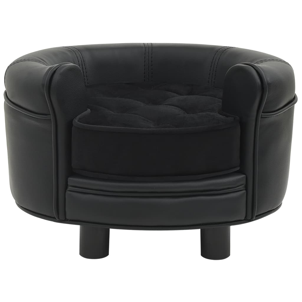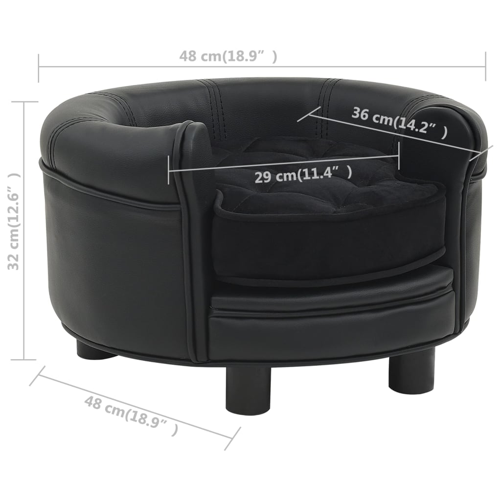 vidaXL Dog Sofa Black Faux leather, plush, solid fir wood