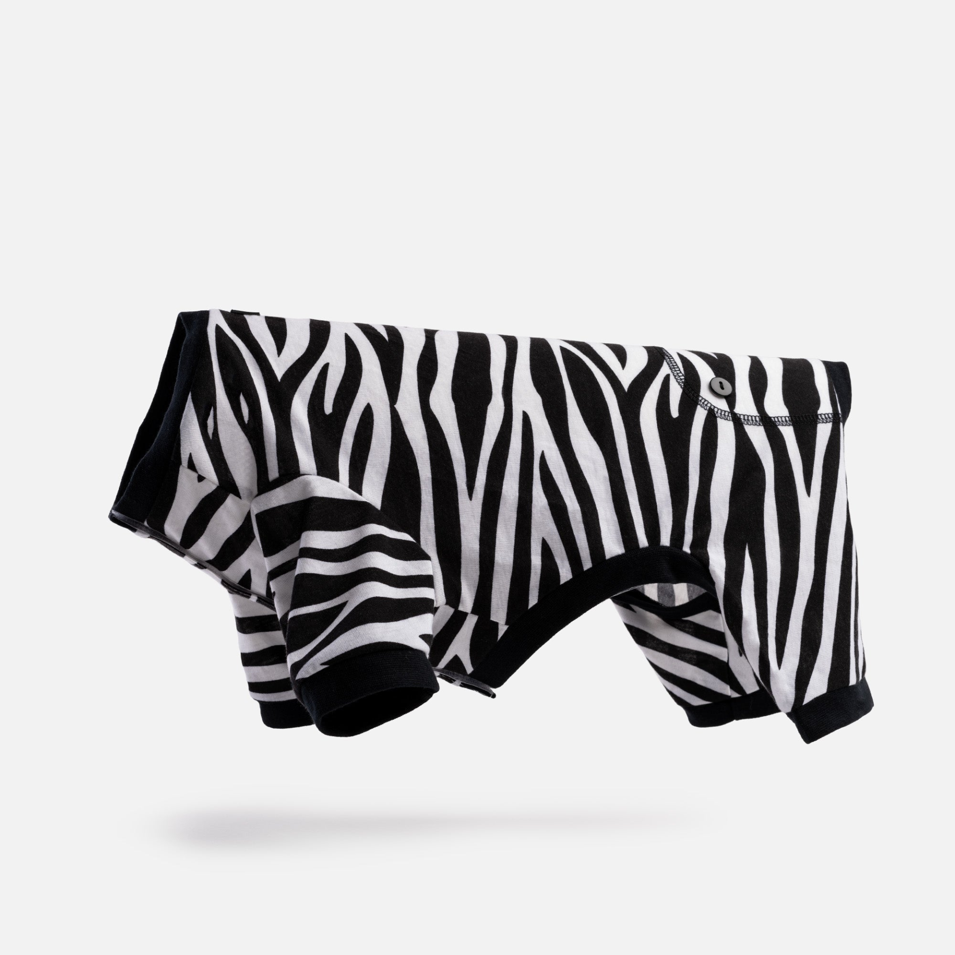 Let your pup stand out in these Zebra Print Dog Pajamas, designed for both comfort and style. Perfect for snuggles, playtime, and cozy nights, this onesie is crafted from ultra-soft fabric to keep your pet warm and comfy all night long. Plus, the easy Velcro closure makes dressing up hassle-free!