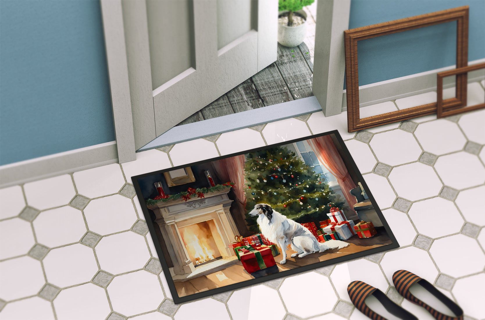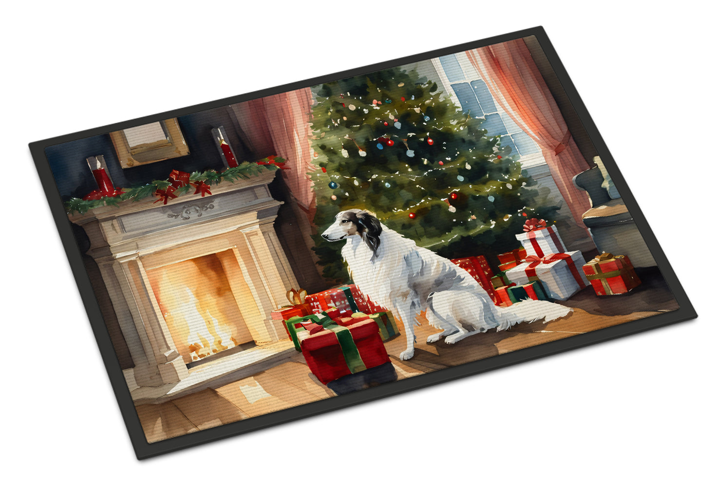 Doormat featuring breed specific Borzoi or Russian Wolfhound artwork. Celebrate Christmas with this Christmas Doormat. Welcome your guests in style with our Artwork Door Mat, designed to withstand almost any weather condition. This mat, measuring approximately 24 by 36 inches, is held together by durable black binding tape. Its top layer, composed of polyester felt, is dyed with the eye-catching image you see on the mat. A few layers below provide the mat with stability, while its rubber bottom is stamped to help prevent slipping and ensures safety. Our mat works wonderfully as both an indoor or outdoor door mat. For cleaning, simply hose it off with water or use a power washer - no need for any cleaner that produces suds. Avoid scrubbing with a brush, instead, opt for the vacuum on floor setting. Designed manufactured and printed in the USA, this mat is a perfect addition to your porch, outdoor kitchen, entryway, or any indoor space. Its unique design makes it a charming decorative rug that greets your guests and adds a stylish touch to your home decor.