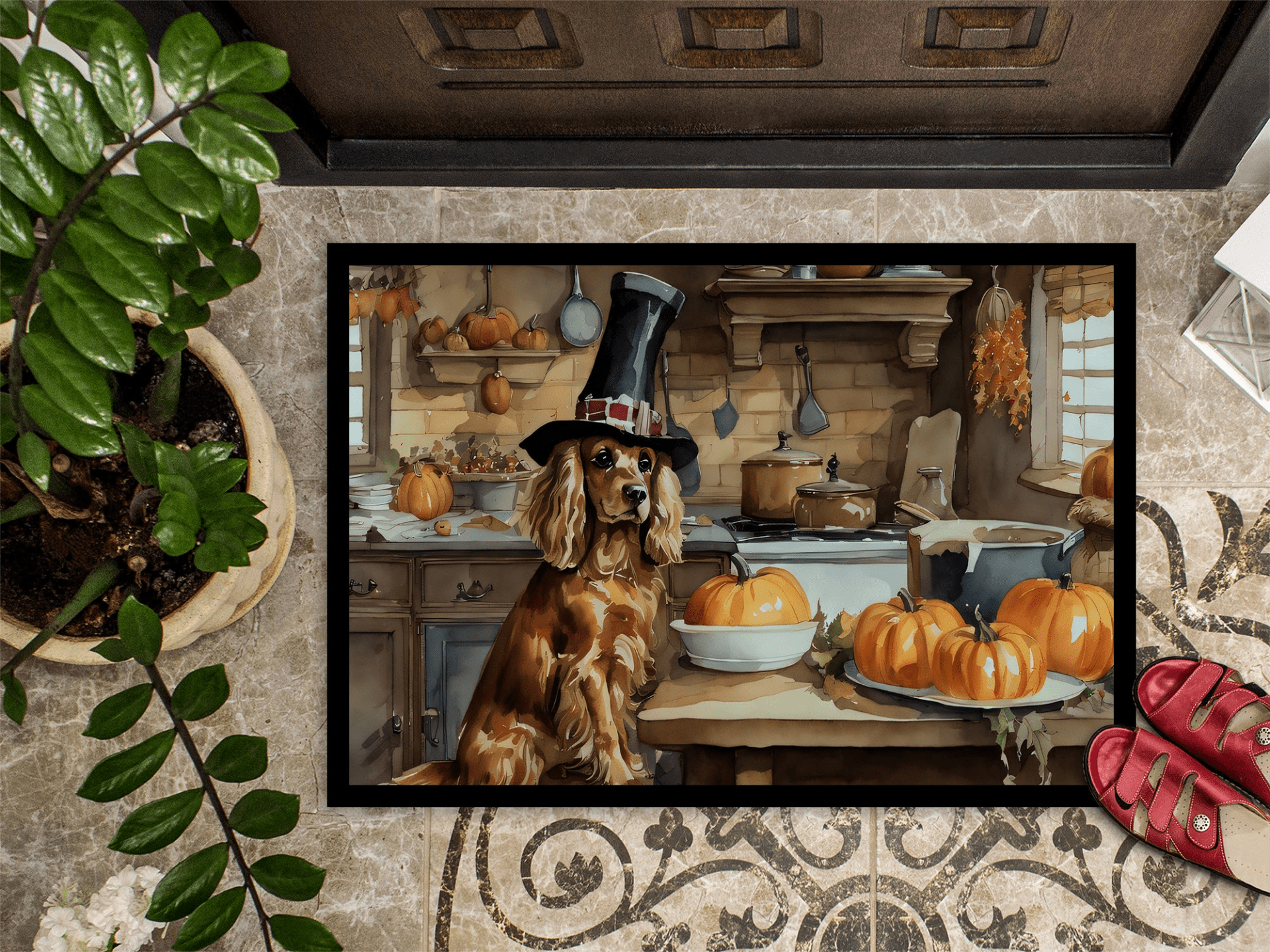Doormat featuring breed specific Cocker Spaniel artwork. Celebrate Halloween with this Halloween Doormat. Welcome your guests in style with our Artwork Door Mat, designed to withstand almost any weather condition. This mat, measuring approximately 24 by 36 inches, is held together by durable black binding tape. Its top layer, composed of polyester felt, is dyed with the eye-catching image you see on the mat. A few layers below provide the mat with stability, while its rubber bottom is stamped to help prevent slipping and ensures safety. Our mat works wonderfully as both an indoor or outdoor door mat. For cleaning, simply hose it off with water or use a power washer - no need for any cleaner that produces suds. Avoid scrubbing with a brush, instead, opt for the vacuum on floor setting. Designed manufactured and printed in the USA, this mat is a perfect addition to your porch, outdoor kitchen, entryway, or any indoor space. Its unique design makes it a charming decorative rug that greets your guests and adds a stylish touch to your home decor.