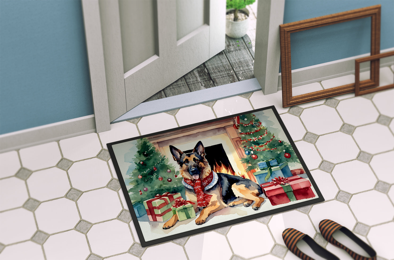 Doormat featuring breed specific German Shepherd artwork. Celebrate Christmas with this Christmas Doormat. Welcome your guests in style with our Artwork Door Mat, designed to withstand almost any weather condition. This mat, measuring approximately 24 by 36 inches, is held together by durable black binding tape. Its top layer, composed of polyester felt, is dyed with the eye-catching image you see on the mat. A few layers below provide the mat with stability, while its rubber bottom is stamped to help prevent slipping and ensures safety. Our mat works wonderfully as both an indoor or outdoor door mat. For cleaning, simply hose it off with water or use a power washer - no need for any cleaner that produces suds. Avoid scrubbing with a brush, instead, opt for the vacuum on floor setting. Designed manufactured and printed in the USA, this mat is a perfect addition to your porch, outdoor kitchen, entryway, or any indoor space. Its unique design makes it a charming decorative rug that greets your guests and adds a stylish touch to your home decor.