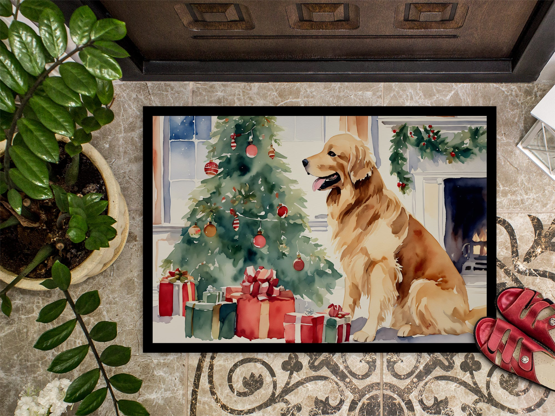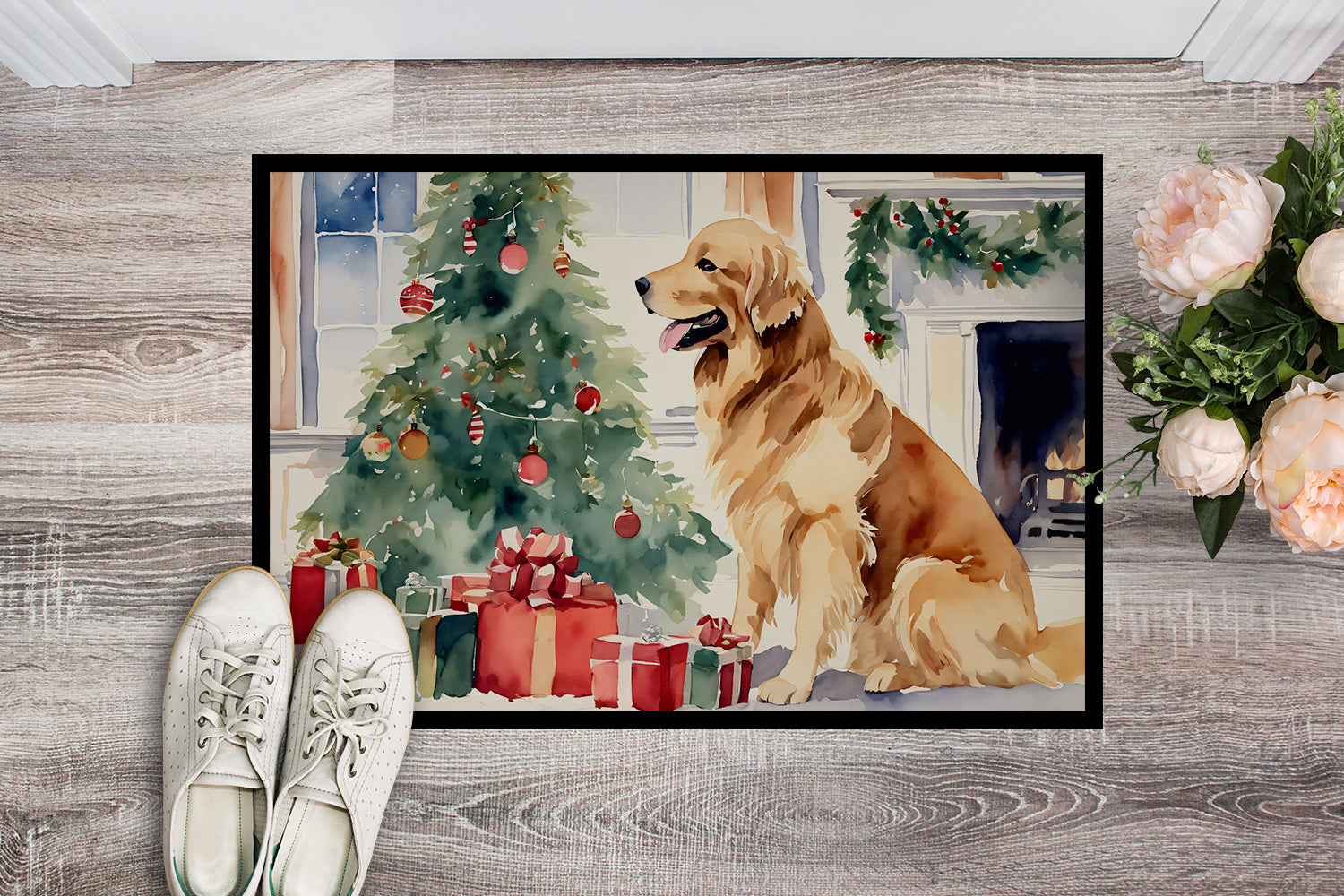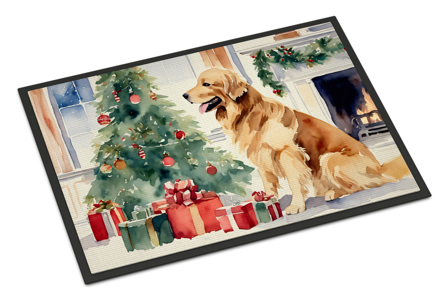 Doormat featuring breed specific Golden Retriever artwork. Celebrate Christmas with this Christmas Doormat. Welcome your guests in style with our Artwork Door Mat, designed to withstand almost any weather condition. This mat, measuring approximately 24 by 36 inches, is held together by durable black binding tape. Its top layer, composed of polyester felt, is dyed with the eye-catching image you see on the mat. A few layers below provide the mat with stability, while its rubber bottom is stamped to help prevent slipping and ensures safety. Our mat works wonderfully as both an indoor or outdoor door mat. For cleaning, simply hose it off with water or use a power washer - no need for any cleaner that produces suds. Avoid scrubbing with a brush, instead, opt for the vacuum on floor setting. Designed manufactured and printed in the USA, this mat is a perfect addition to your porch, outdoor kitchen, entryway, or any indoor space. Its unique design makes it a charming decorative rug that greets your guests and adds a stylish touch to your home decor.