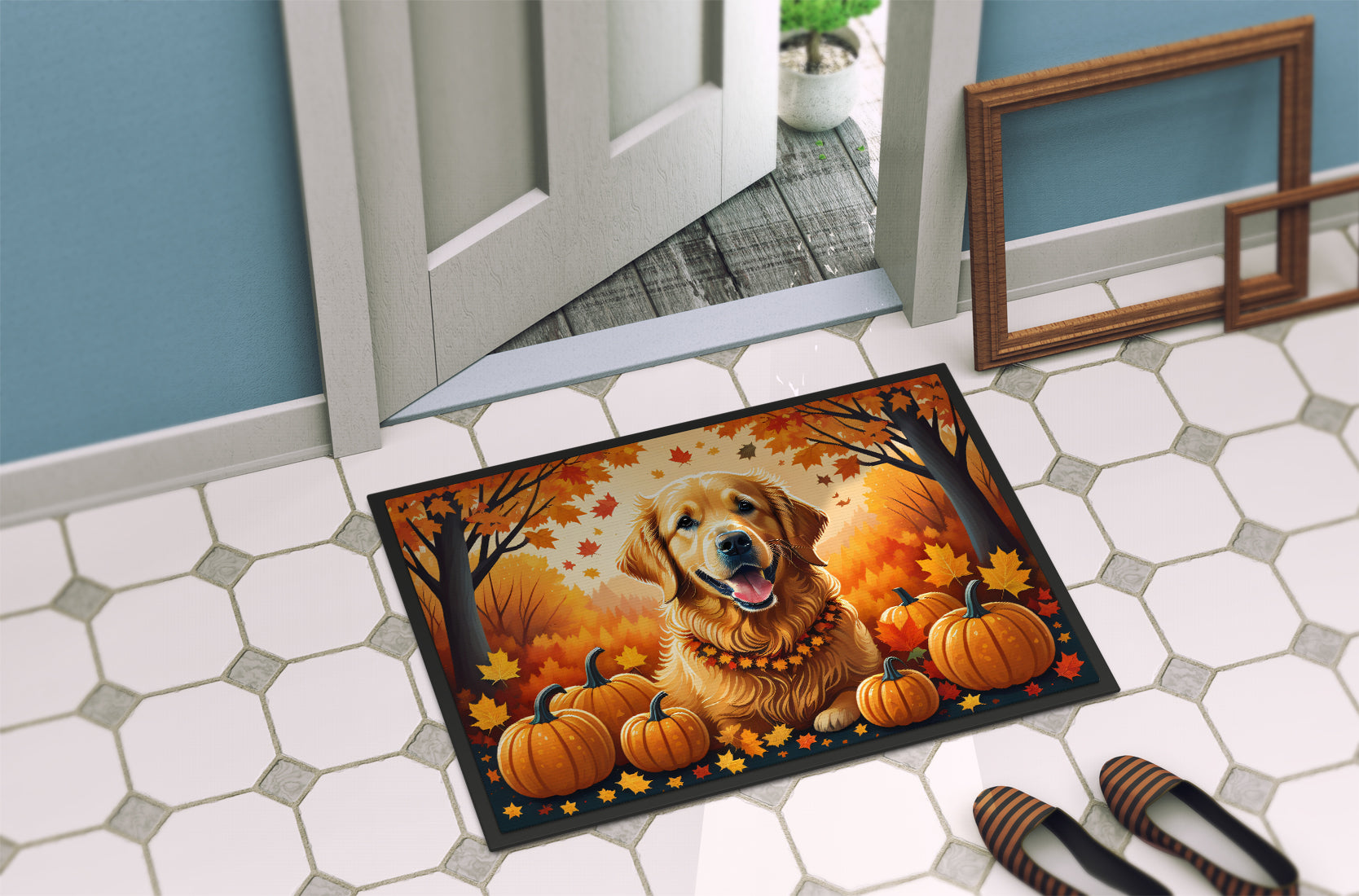 Doormat featuring breed specific Golden Retriever artwork. Welcome your guests in style with our Artwork Door Mat, designed to withstand almost any weather condition. This mat, measuring approximately 24 by 36 inches, is held together by durable black binding tape. Its top layer, composed of polyester felt, is dyed with the eye-catching image you see on the mat. A few layers below provide the mat with stability, while its rubber bottom is stamped to help prevent slipping and ensures safety. Our mat works wonderfully as both an indoor or outdoor door mat. For cleaning, simply hose it off with water or use a power washer - no need for any cleaner that produces suds. Avoid scrubbing with a brush, instead, opt for the vacuum on floor setting. Designed manufactured and printed in the USA, this mat is a perfect addition to your porch, outdoor kitchen, entryway, or any indoor space. Its unique design makes it a charming decorative rug that greets your guests and adds a stylish touch to your home decor.