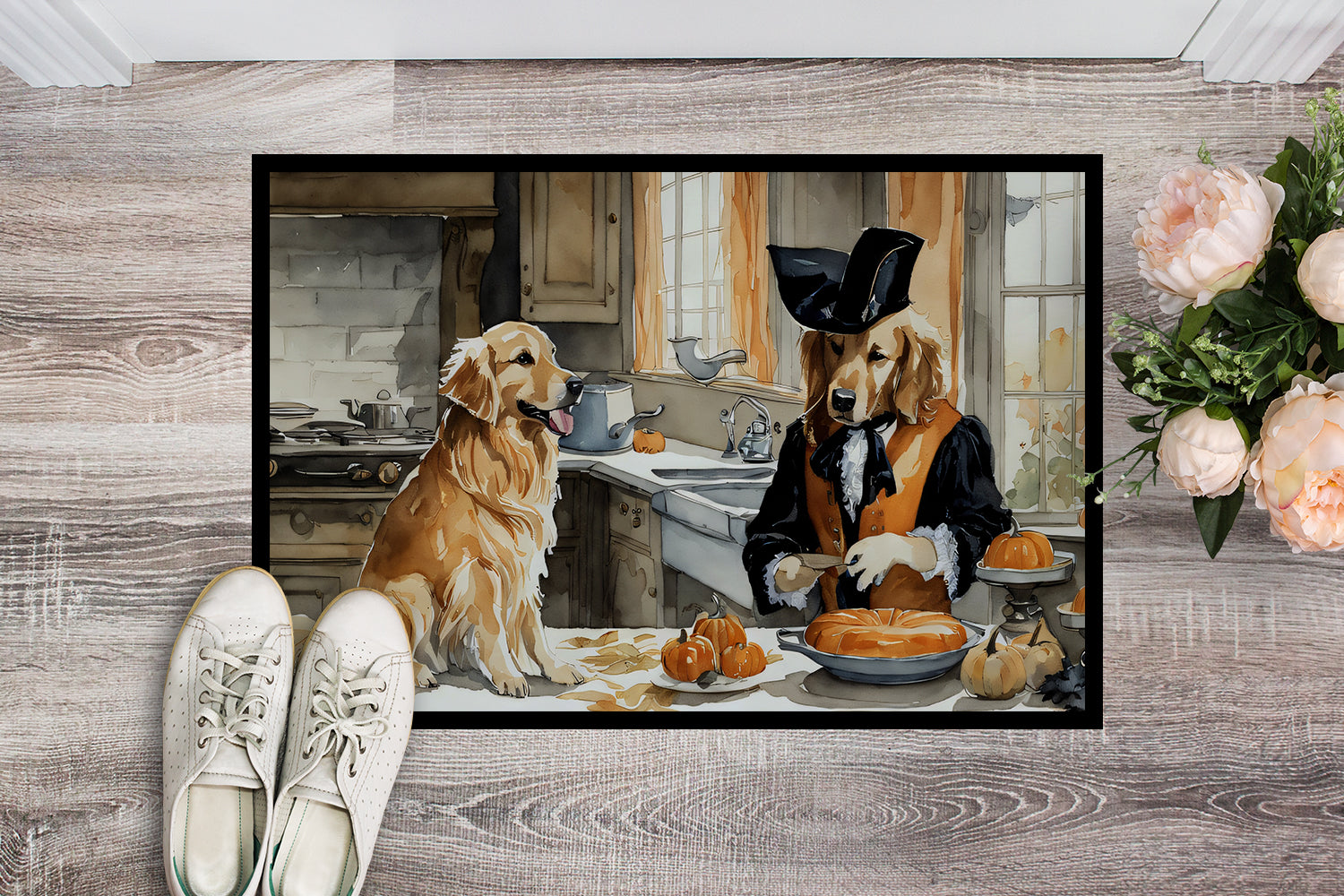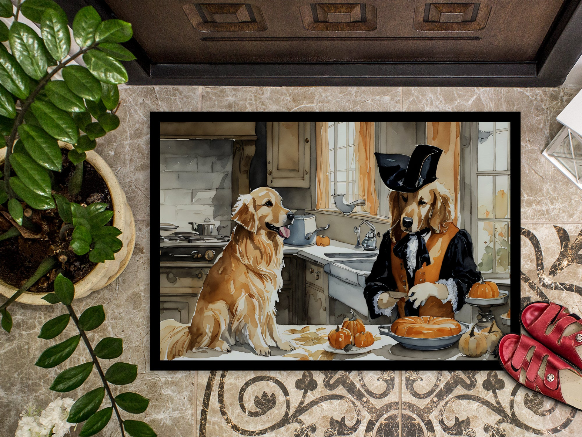 Doormat featuring breed specific Golden Retriever artwork. Celebrate Halloween with this Halloween Doormat. Welcome your guests in style with our Artwork Door Mat, designed to withstand almost any weather condition. This mat, measuring approximately 24 by 36 inches, is held together by durable black binding tape. Its top layer, composed of polyester felt, is dyed with the eye-catching image you see on the mat. A few layers below provide the mat with stability, while its rubber bottom is stamped to help prevent slipping and ensures safety. Our mat works wonderfully as both an indoor or outdoor door mat. For cleaning, simply hose it off with water or use a power washer - no need for any cleaner that produces suds. Avoid scrubbing with a brush, instead, opt for the vacuum on floor setting. Designed manufactured and printed in the USA, this mat is a perfect addition to your porch, outdoor kitchen, entryway, or any indoor space. Its unique design makes it a charming decorative rug that greets your guests and adds a stylish touch to your home decor.