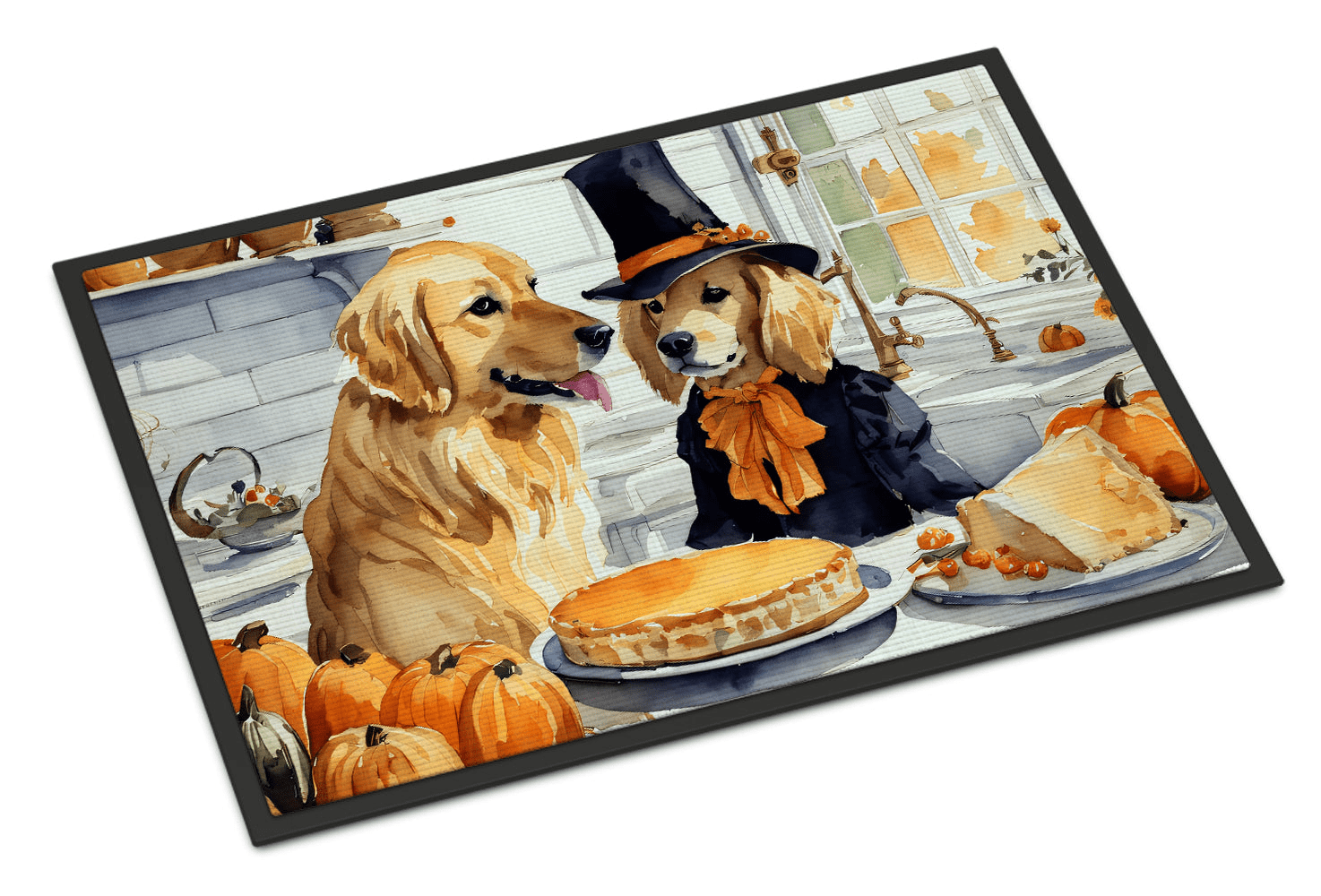 Doormat featuring breed specific Golden Retriever artwork. Celebrate Halloween with this Halloween Doormat. Welcome your guests in style with our Artwork Door Mat, designed to withstand almost any weather condition. This mat, measuring approximately 24 by 36 inches, is held together by durable black binding tape. Its top layer, composed of polyester felt, is dyed with the eye-catching image you see on the mat. A few layers below provide the mat with stability, while its rubber bottom is stamped to help prevent slipping and ensures safety. Our mat works wonderfully as both an indoor or outdoor door mat. For cleaning, simply hose it off with water or use a power washer - no need for any cleaner that produces suds. Avoid scrubbing with a brush, instead, opt for the vacuum on floor setting. Designed manufactured and printed in the USA, this mat is a perfect addition to your porch, outdoor kitchen, entryway, or any indoor space. Its unique design makes it a charming decorative rug that greets your guests and adds a stylish touch to your home decor.