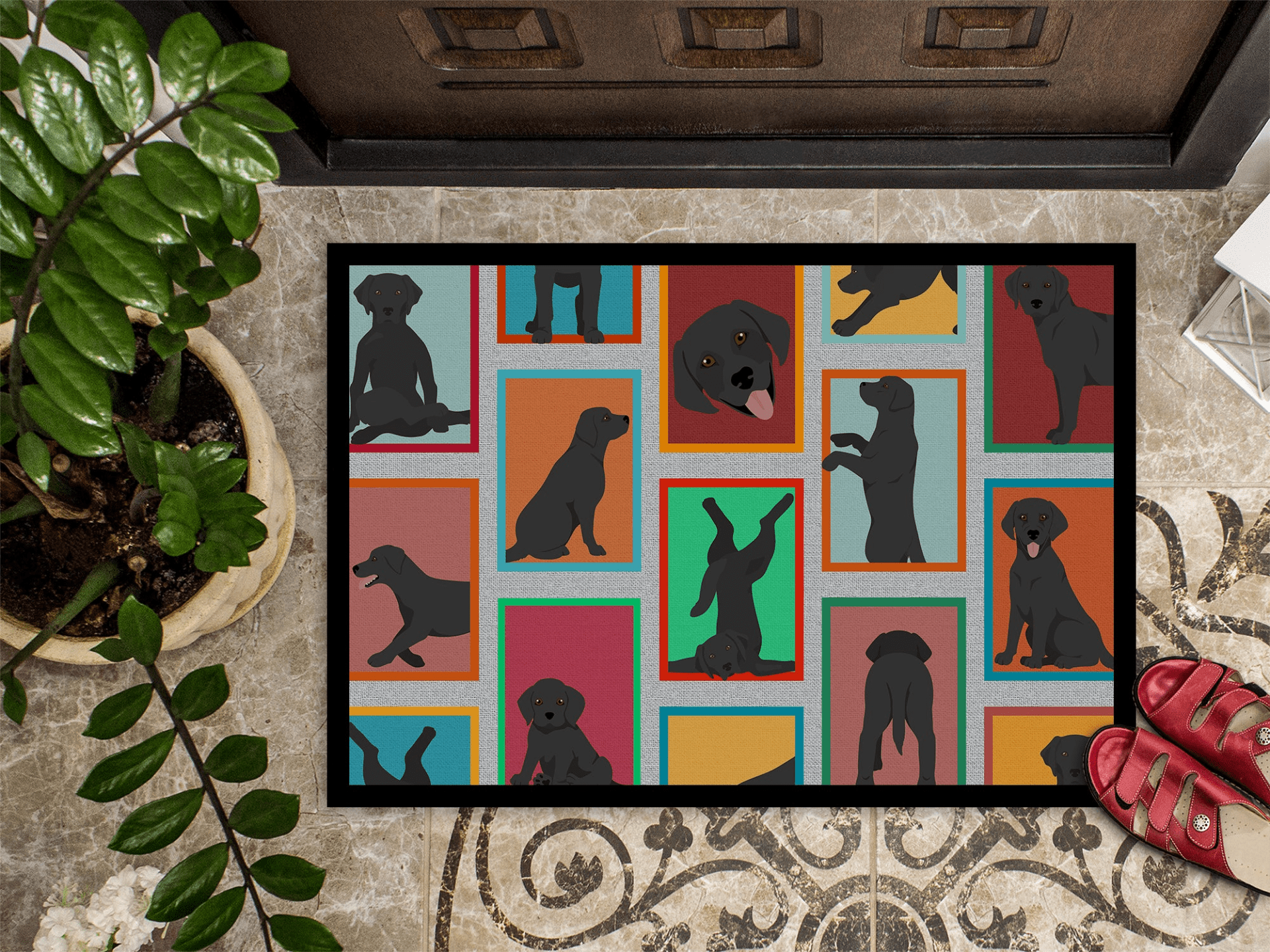Doormat featuring breed specific Labrador Retriever artwork. Welcome your guests in style with our Artwork Door Mat, designed to withstand almost any weather condition. This mat, measuring approximately 18 by 27 inches, is held together by durable black binding tape. Its top layer, composed of polyester felt, is dyed with the eye-catching image you see on the mat. A few layers below provide the mat with stability, while its rubber bottom is stamped to help prevent slipping and ensures safety. Our mat works wonderfully as both an indoor or outdoor door mat. For cleaning, simply hose it off with water or use a power washer - no need for any cleaner that produces suds. Avoid scrubbing with a brush, instead, opt for the vacuum on floor setting. Designed manufactured and printed in the USA, this mat is a perfect addition to your porch, outdoor kitchen, entryway, or any indoor space. Its unique design makes it a charming decorative rug that greets your guests and adds a stylish touch to your home decor.