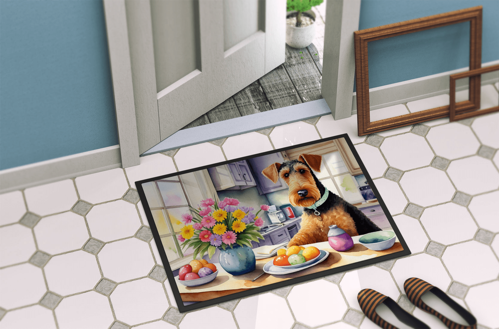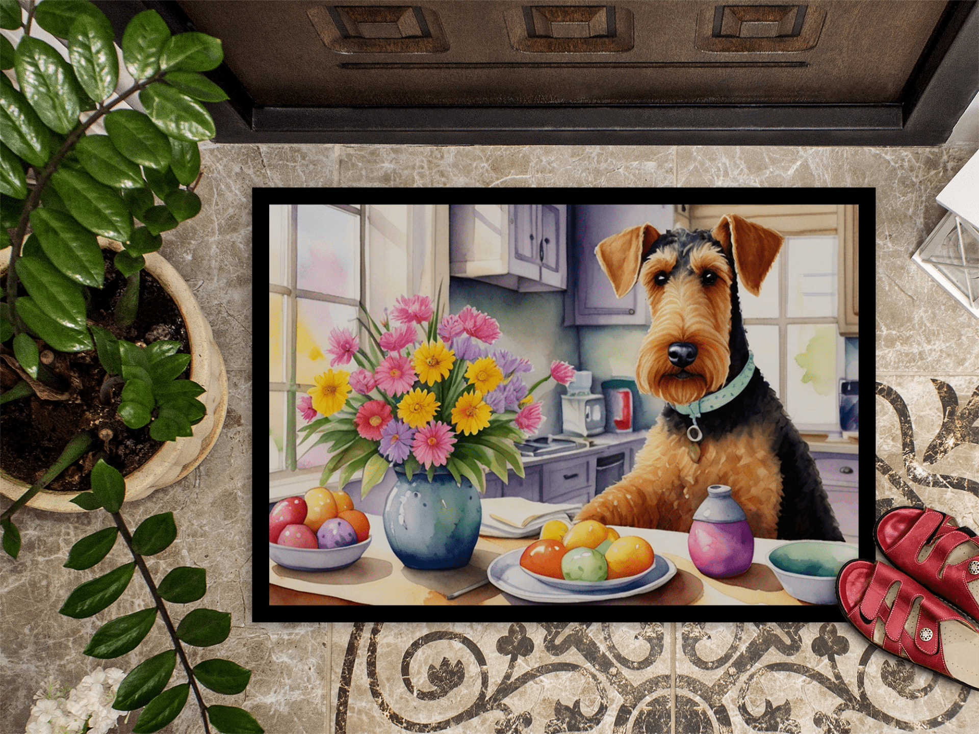 Step outside in style with this Easter-inspired Airedale Terrier doormat. Designed to withstand almost any weather condition, it welcomes guests with a warm, luxurious touch to your entryway. The breed artwork adds personality to your porch, while the durable construction and non-slip rubber bottom keep every welcome safe.