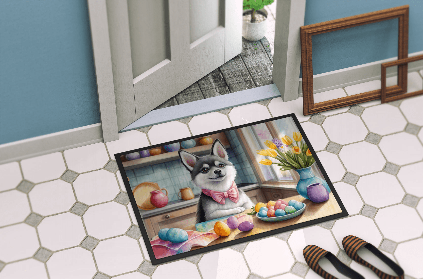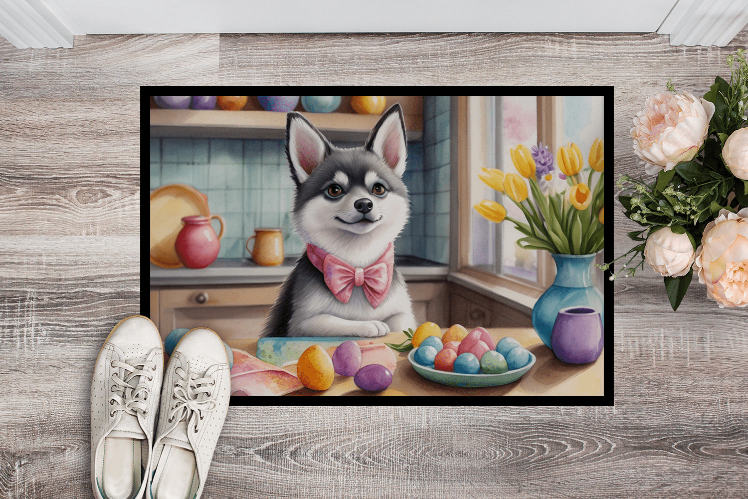 Decorating Easter Alaskan Klee Kai Doormat