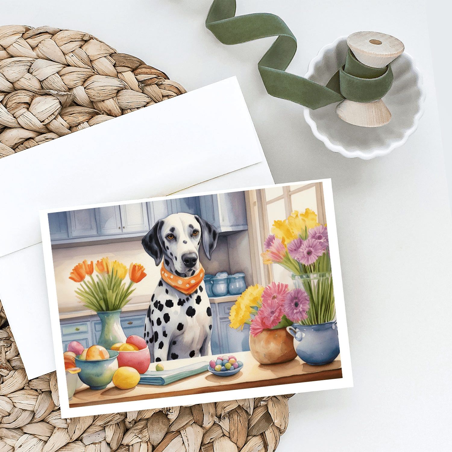- Breed-specific Dalmatian artwork adds Easter charm