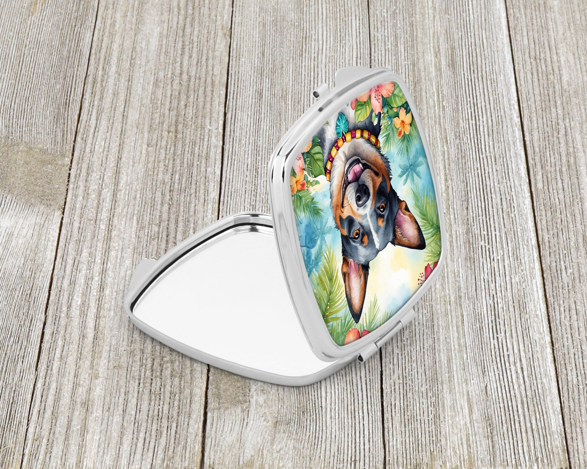 Compact Mirror featuring breed specific Australian Cattle Dog artwork. Introducing our Square Compact Mirror, a blend of elegance, functionality, and compactness, perfect for on-the-go touch-ups. This Silvertone metal mirror, with dimensions of 2.75 inches x 3 inches x .3 inches, fits effortlessly into your purse, handbag, or pocket, ensuring that you can check your appearance anytime, anywhere. Our compact mirror stands out with its eye-catching artwork on the front, adding a dash of style to this practical accessory. It is more than just a mirror; it's a statement piece that reflects your personality and aesthetic. When opened, this compact reveals two mirrors inside, doubling your perspective for precise touch-ups. The Silvertone metal construction ensures durability while maintaining a lightweight feel, making it an ideal everyday carry item. Whether you're rushing to a meeting, prepping for a dinner date, or just need a quick check on your look, our Square Compact Mirror is your reliable companion. Experience the perfect blend of style and practicality with this must-have accessory.